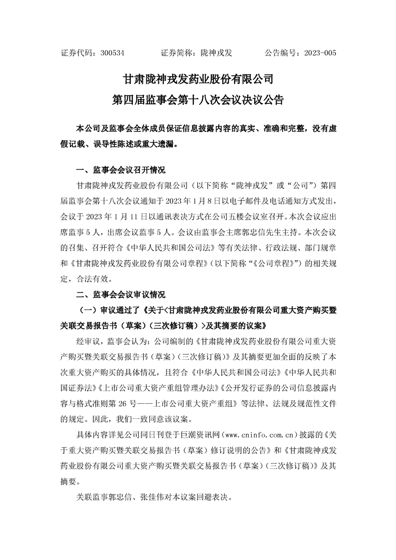 第四屆監(jiān)事會第十八次會議決議公告