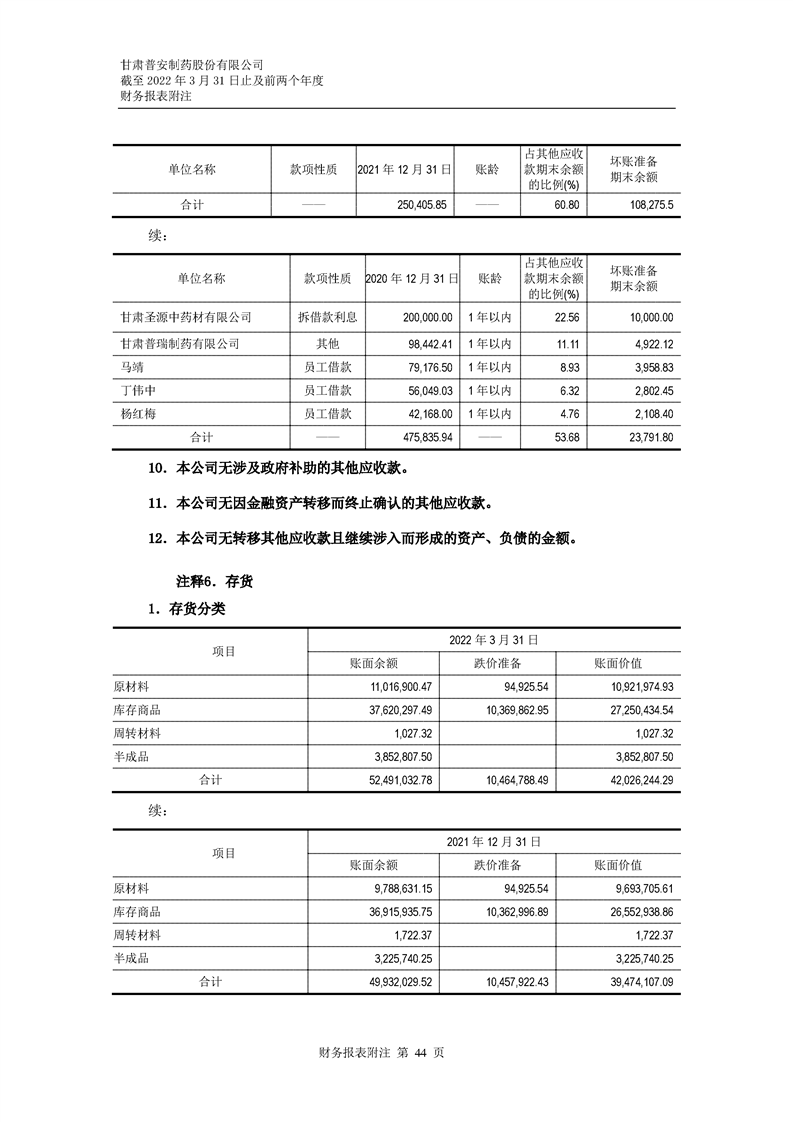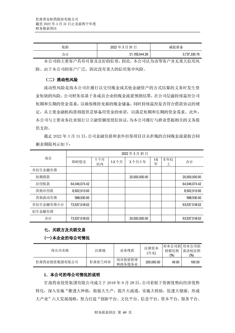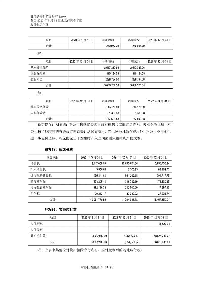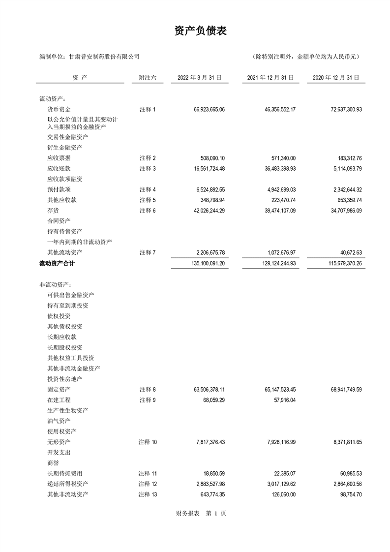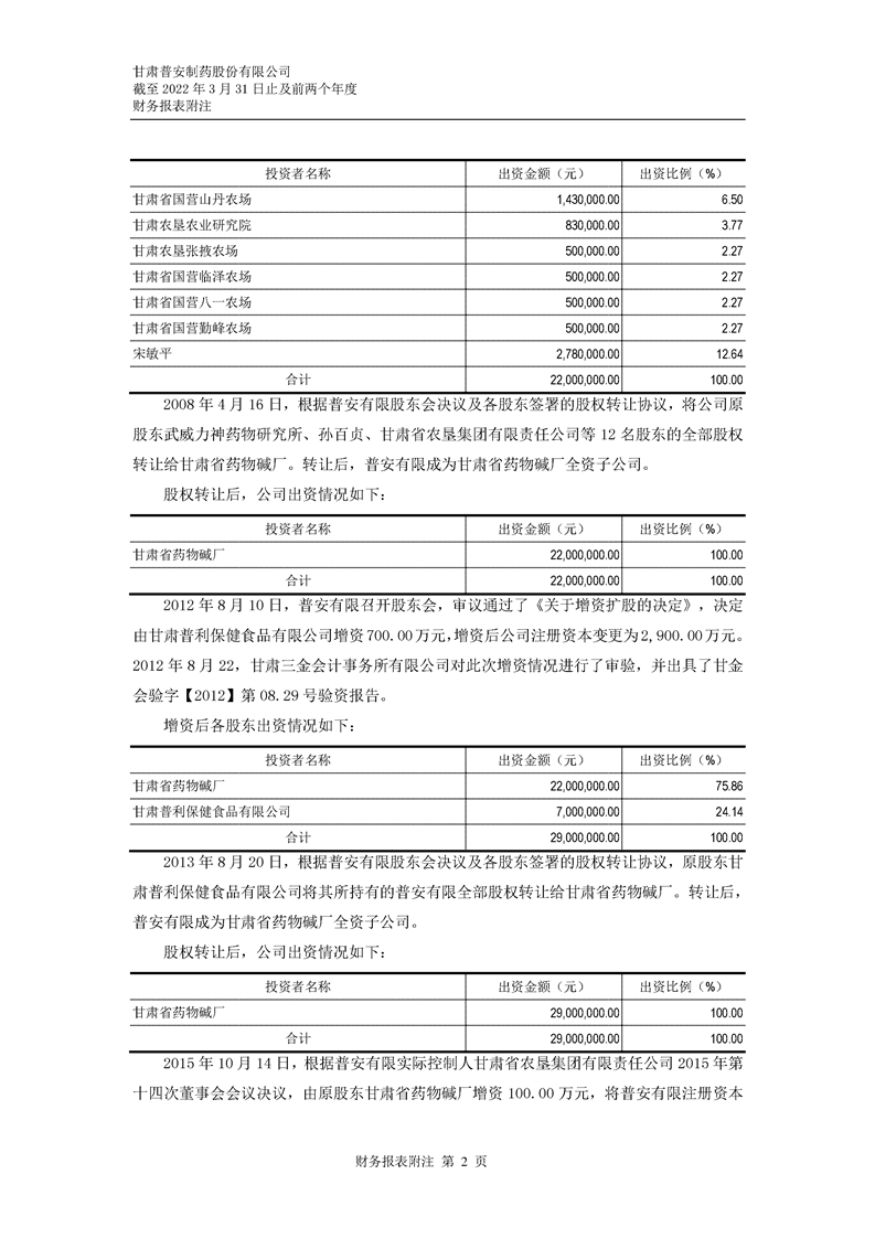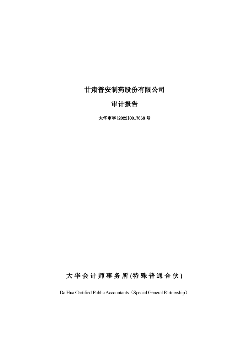 甘肅普安制藥股份有限公司審計(jì)報(bào)告-大華審字[2022]0017668號(hào)