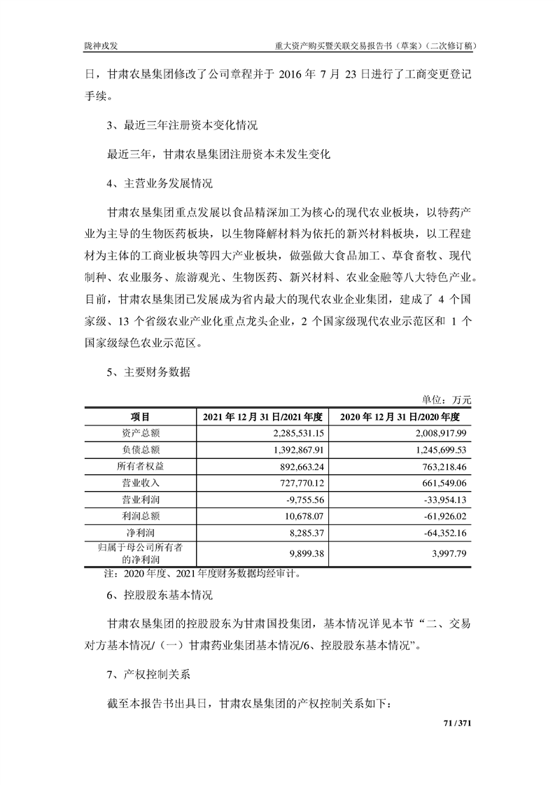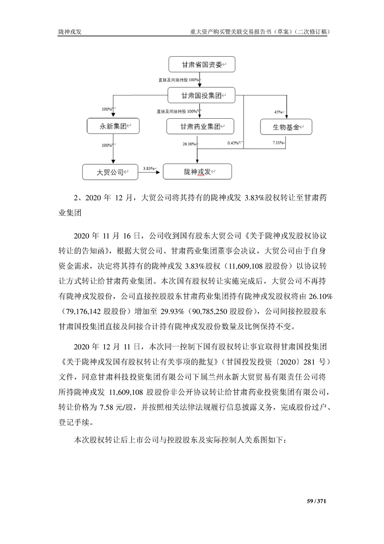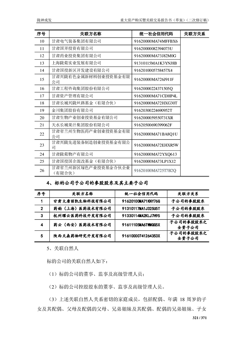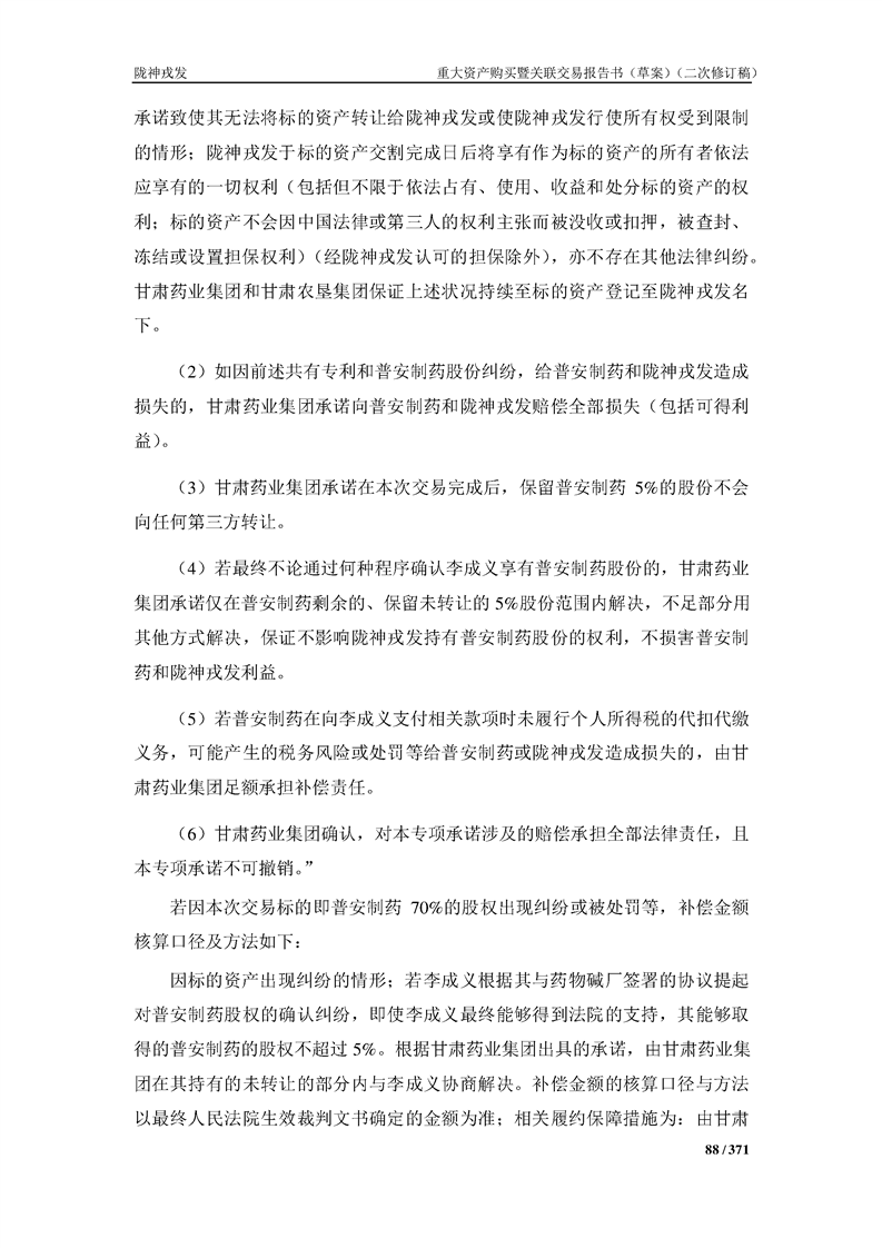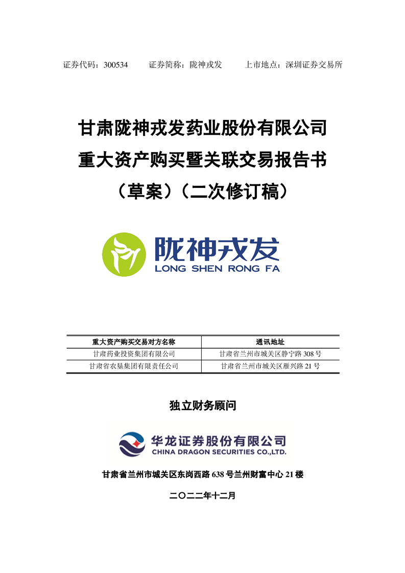 甘肅隴神戎發(fā)藥業(yè)股份有限公司重大資產(chǎn)購(gòu)買暨關(guān)聯(lián)交易報(bào)告書(草案)(二次修訂稿)