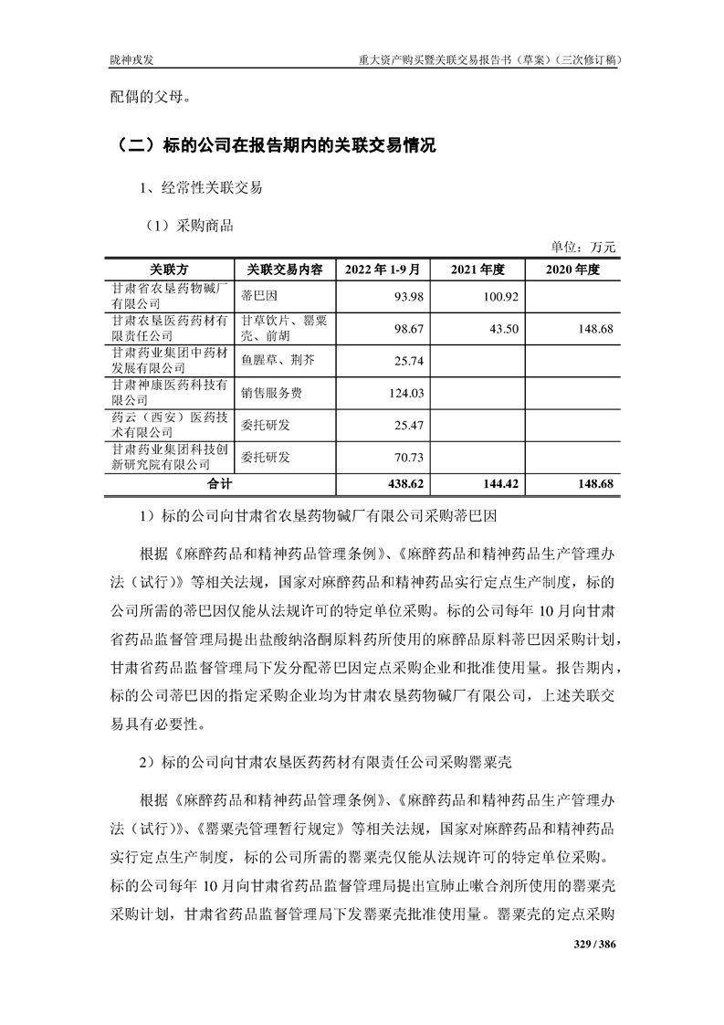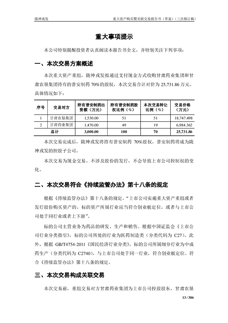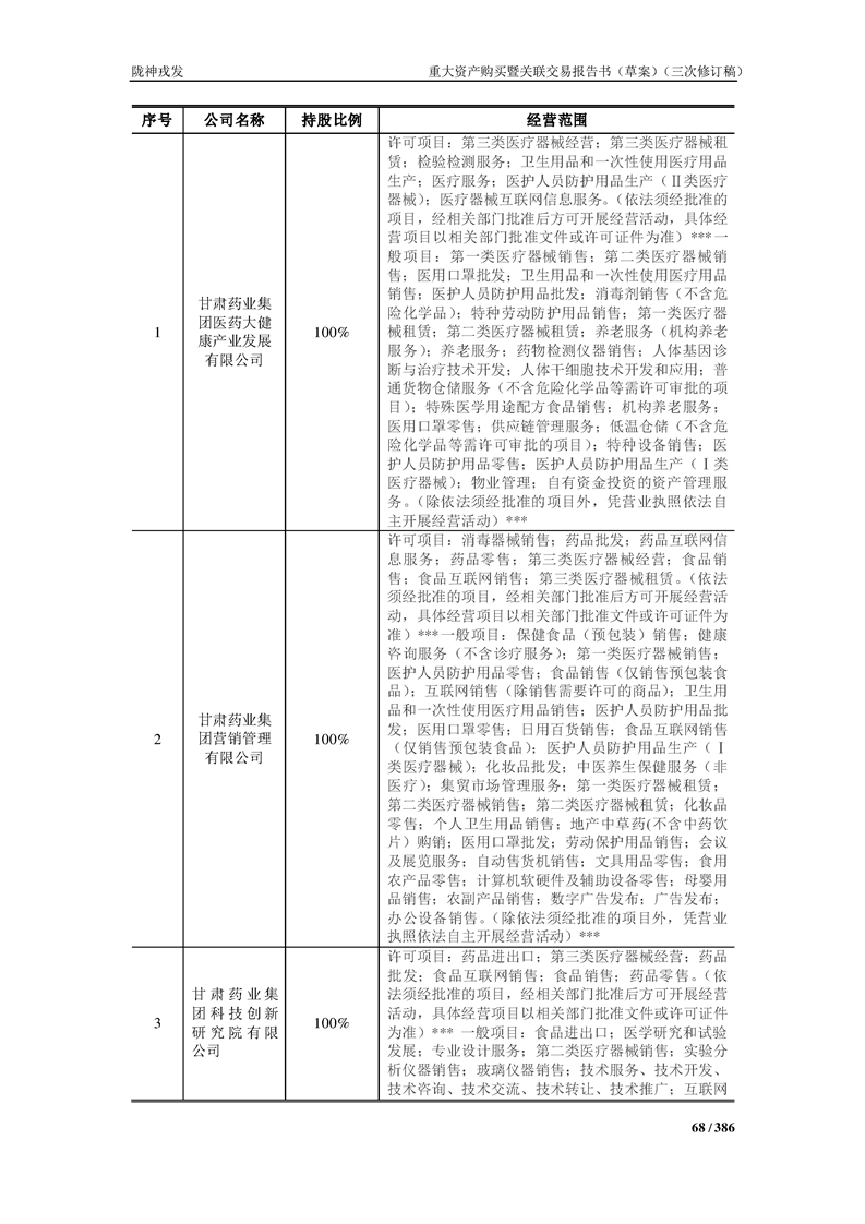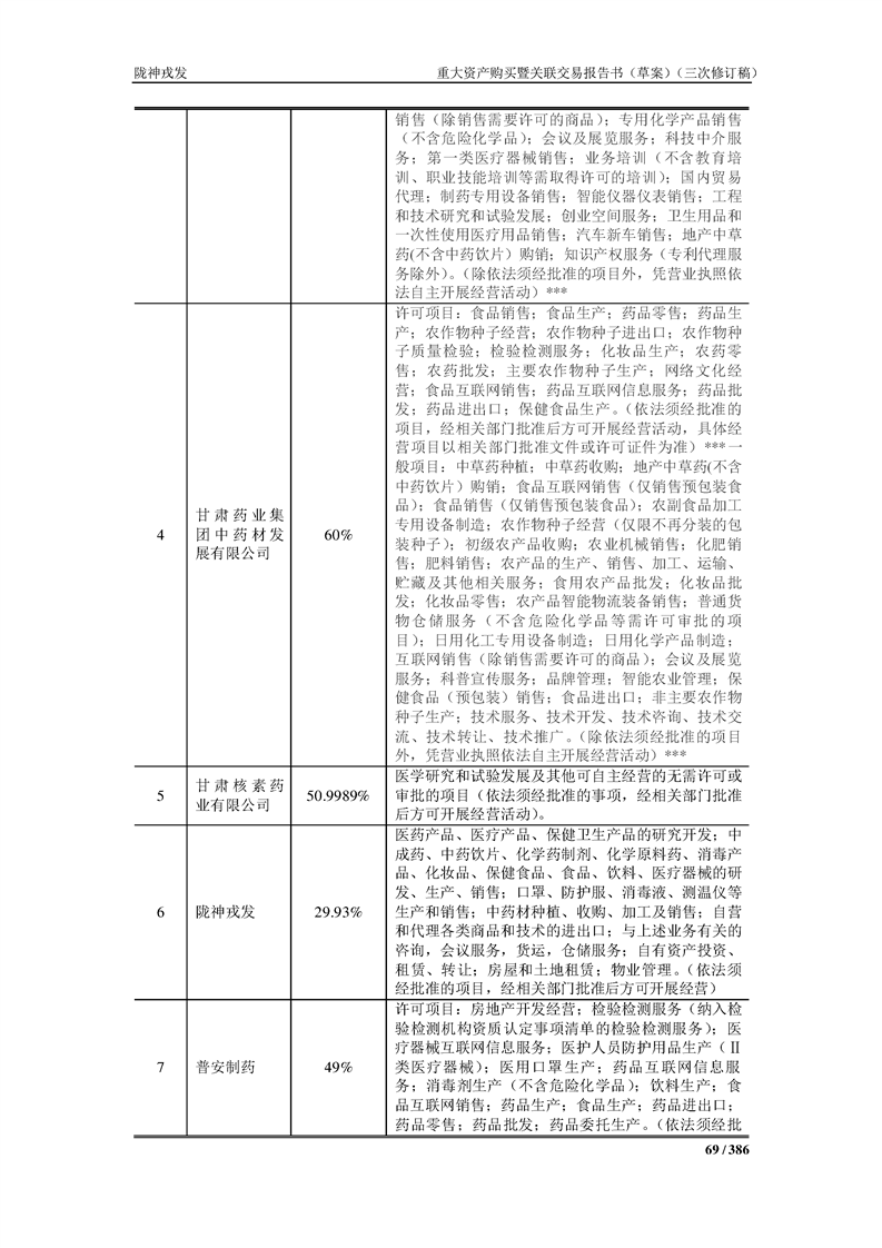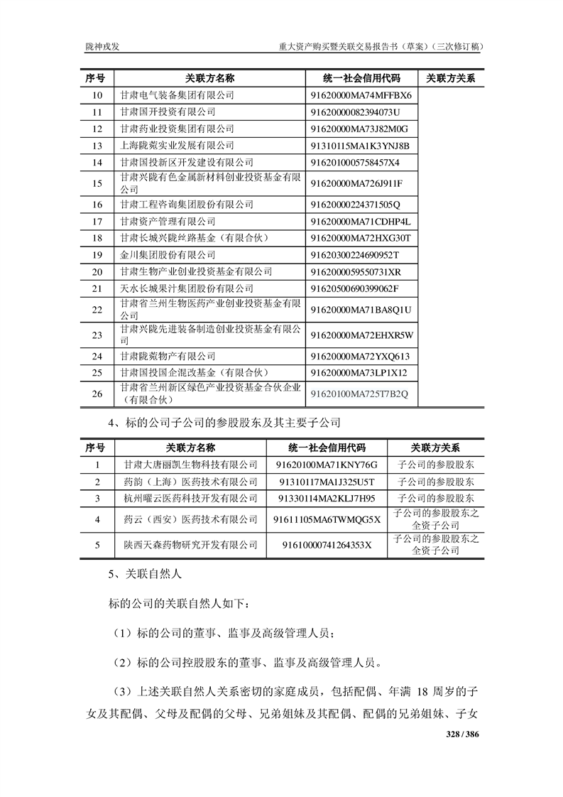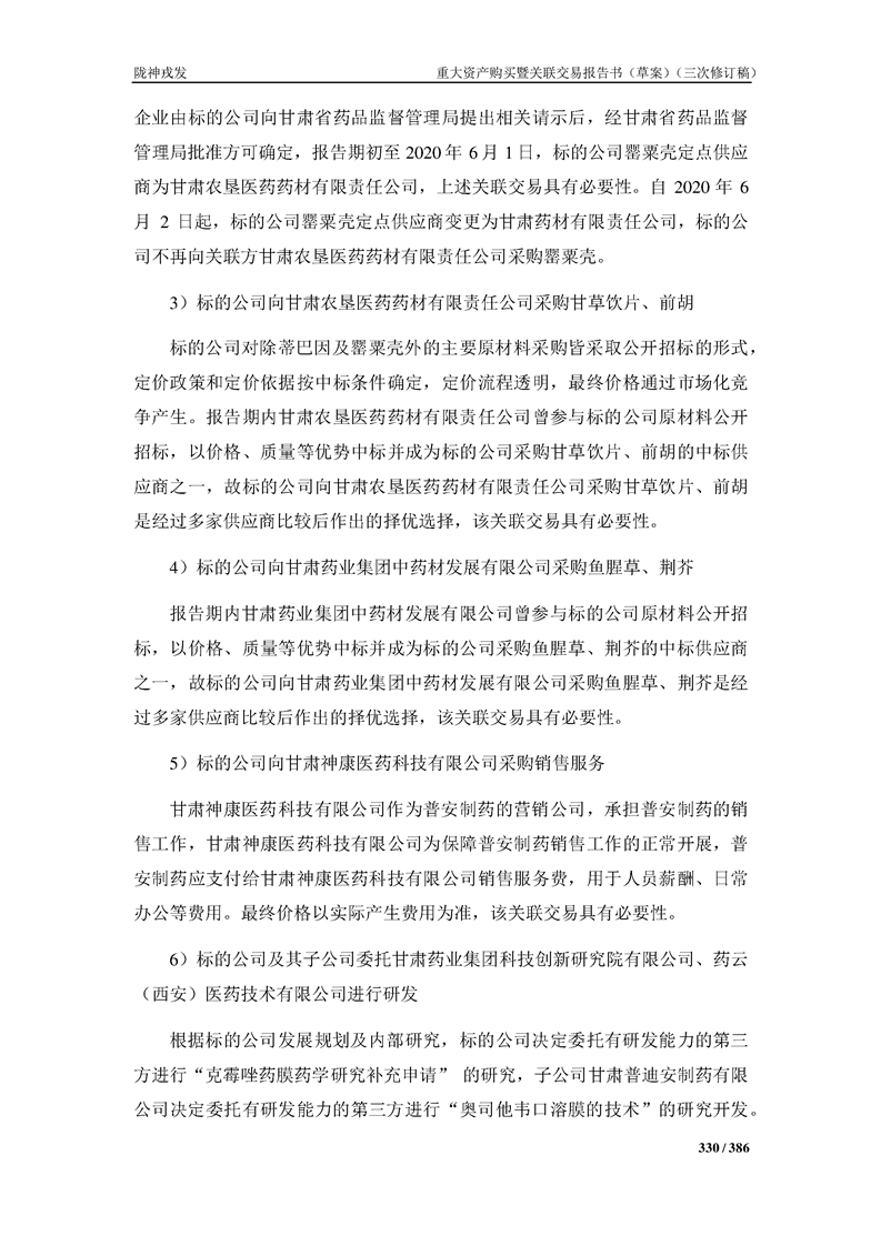 甘肅隴神戎發(fā)藥業(yè)股份有限公司重大資產(chǎn)購買暨關(guān)聯(lián)交易報告書(草案)(三次修訂稿)