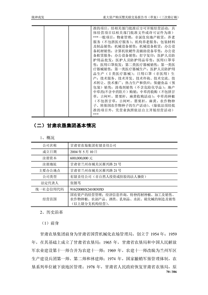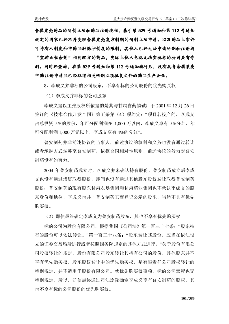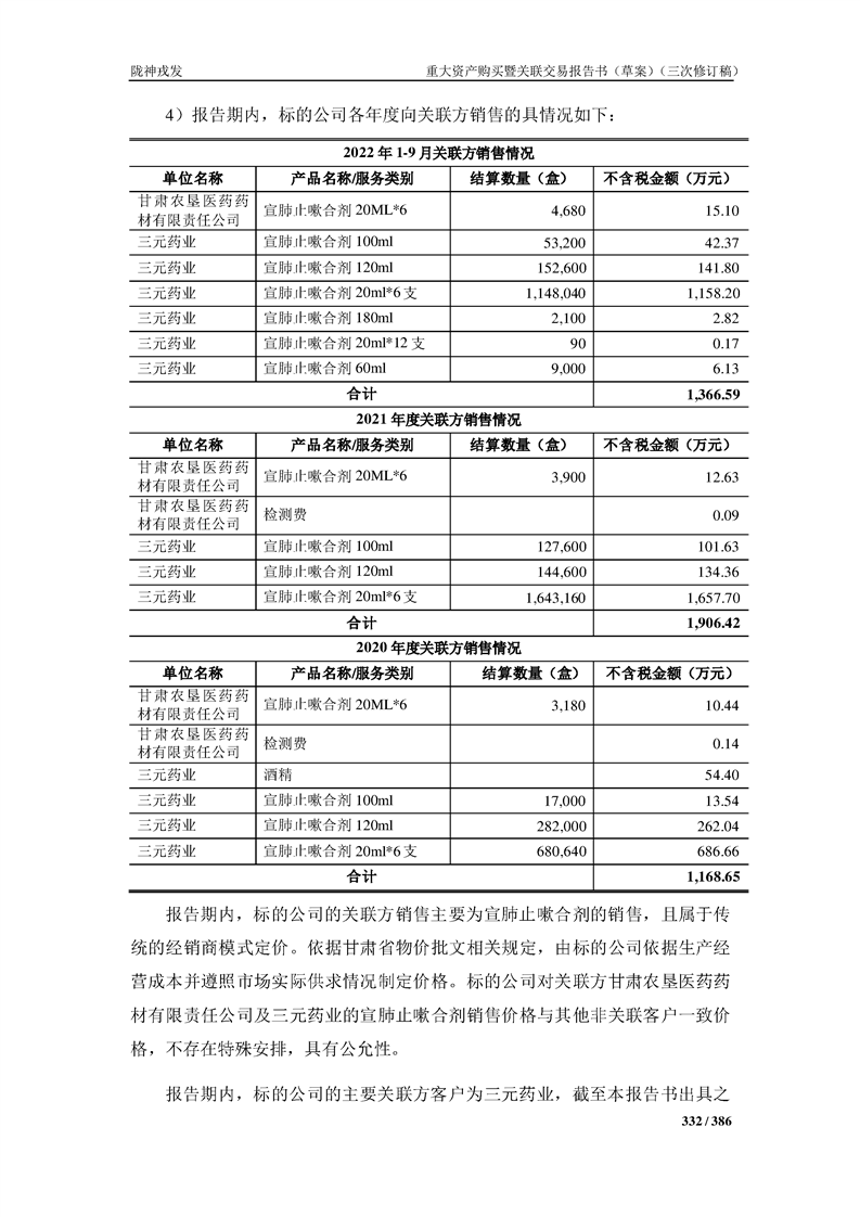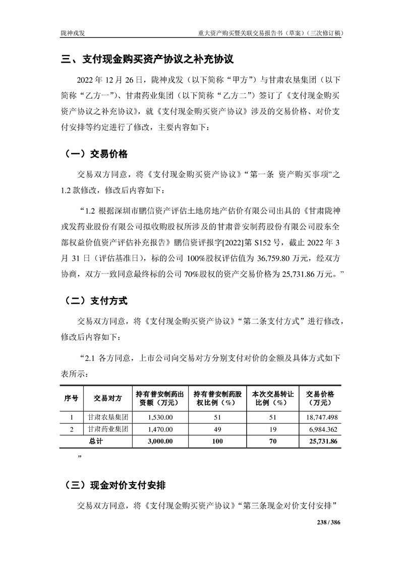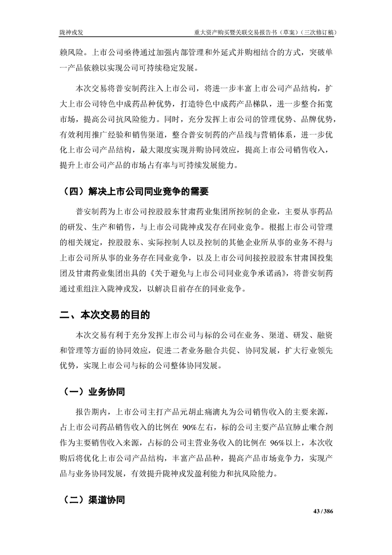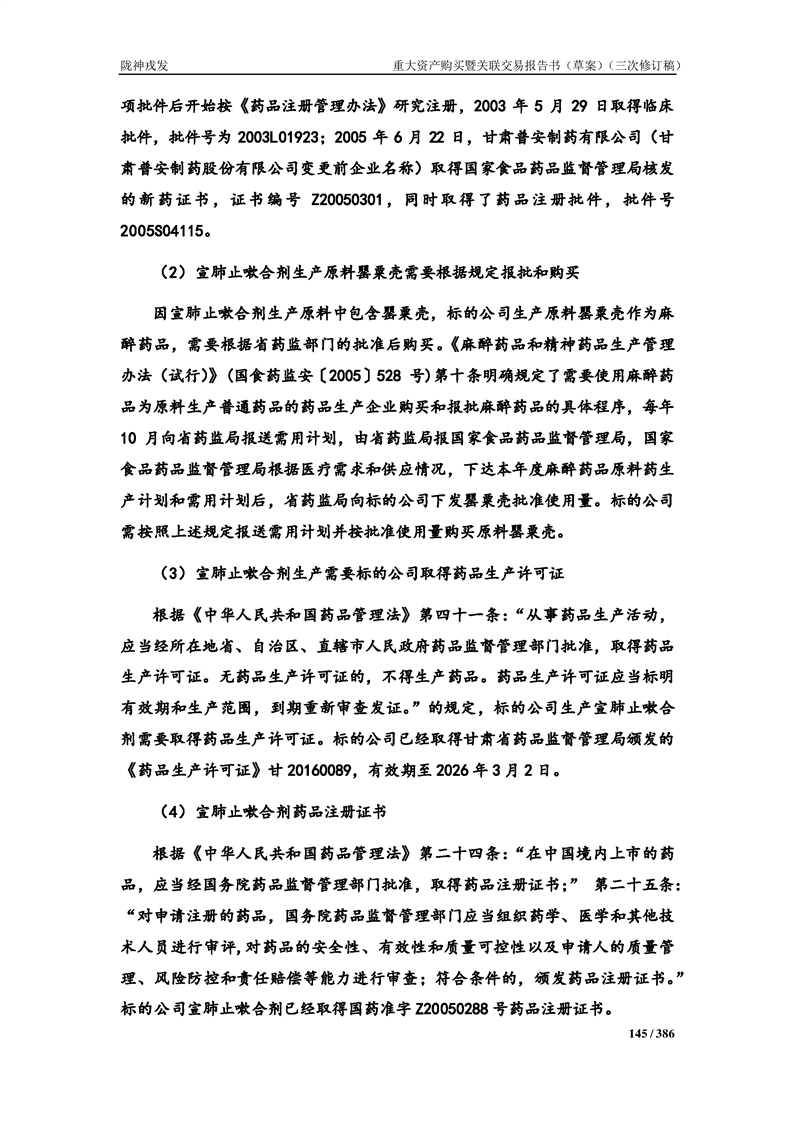 甘肅隴神戎發(fā)藥業(yè)股份有限公司重大資產(chǎn)購買暨關(guān)聯(lián)交易報告書(草案)(三次修訂稿)