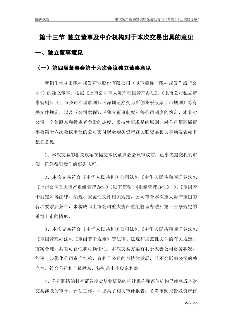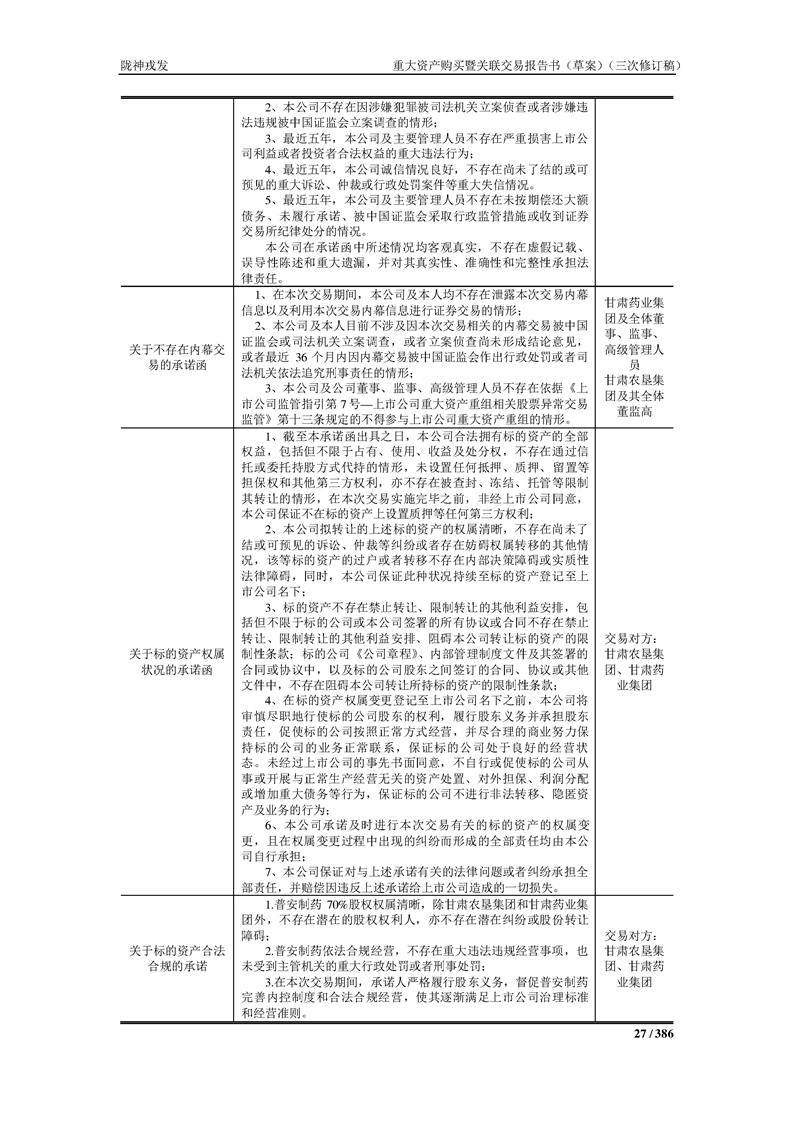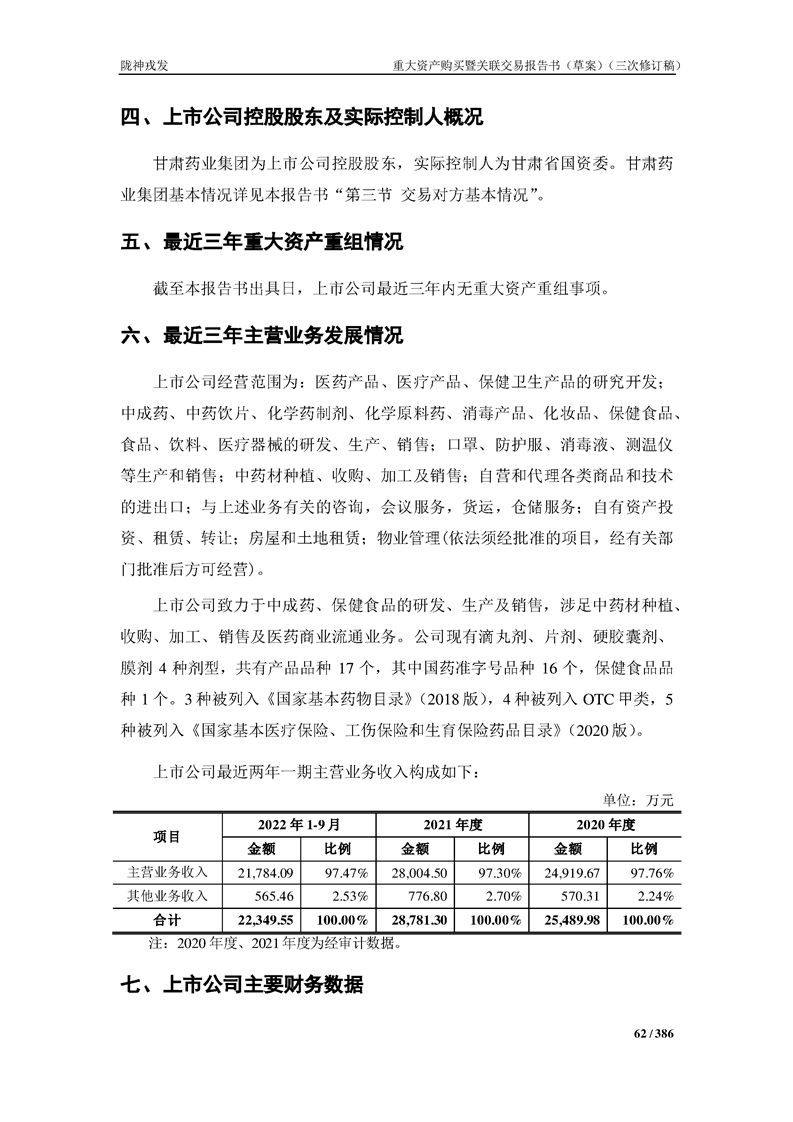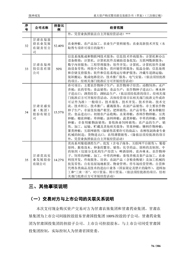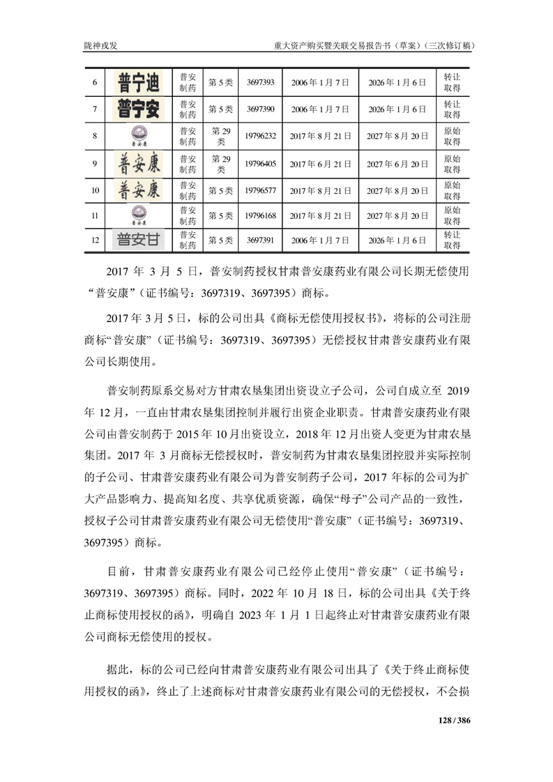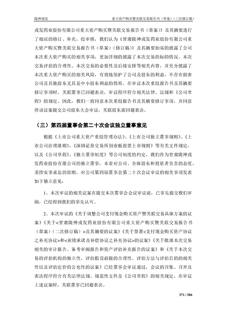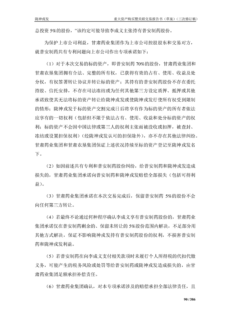 甘肅隴神戎發(fā)藥業(yè)股份有限公司重大資產(chǎn)購買暨關(guān)聯(lián)交易報告書(草案)(三次修訂稿)