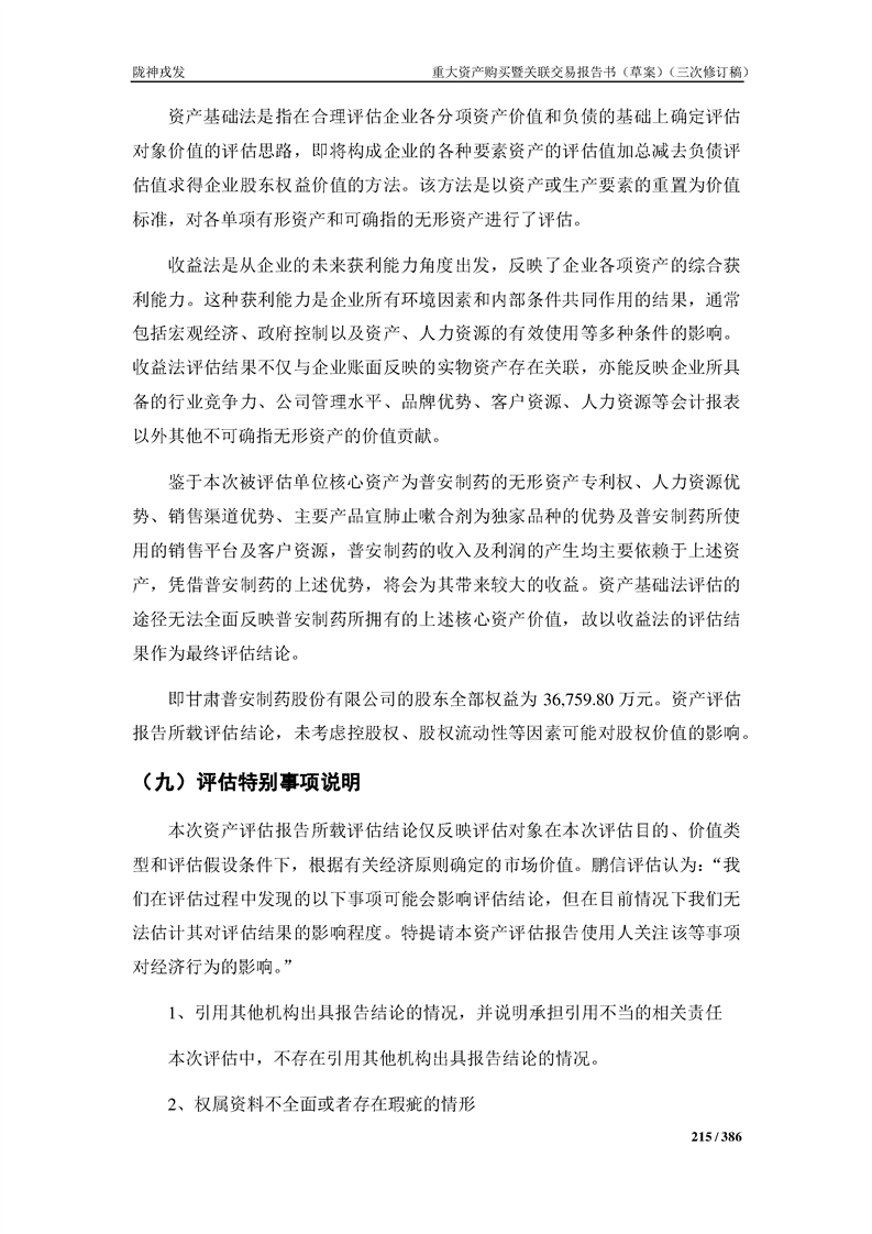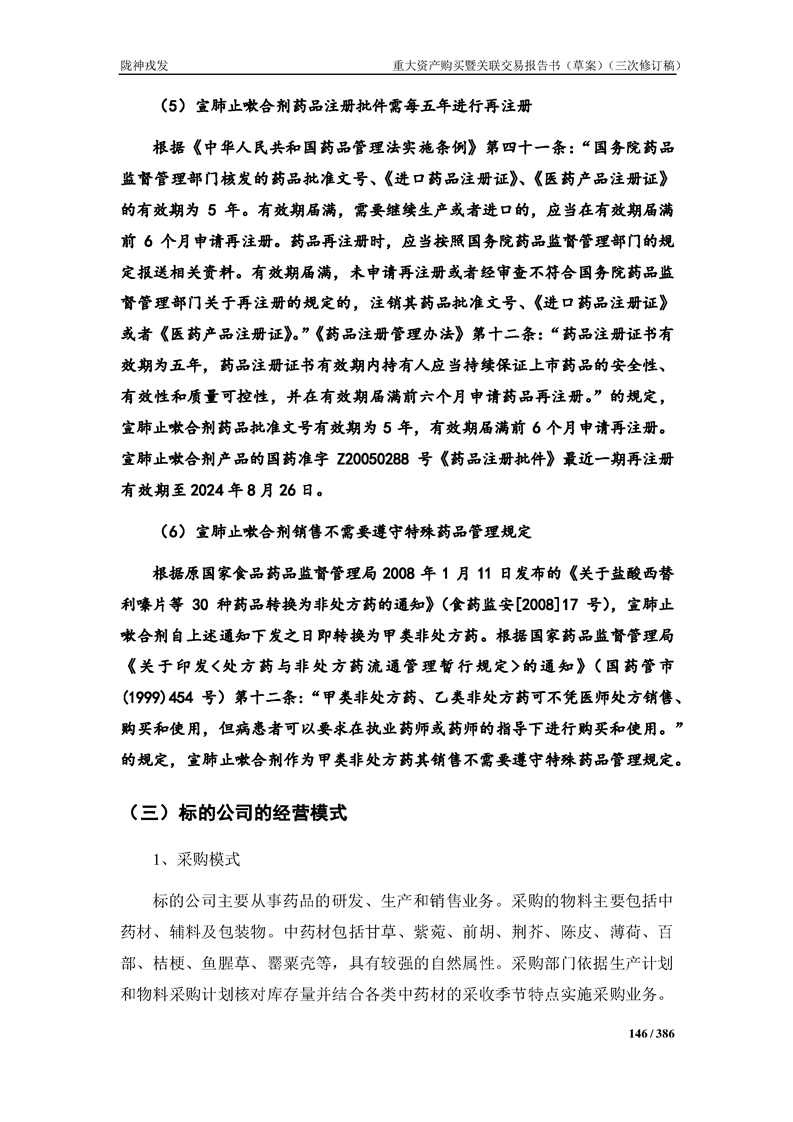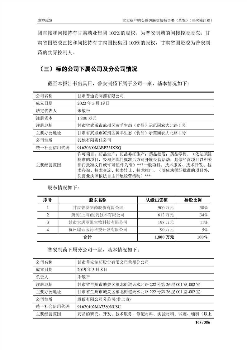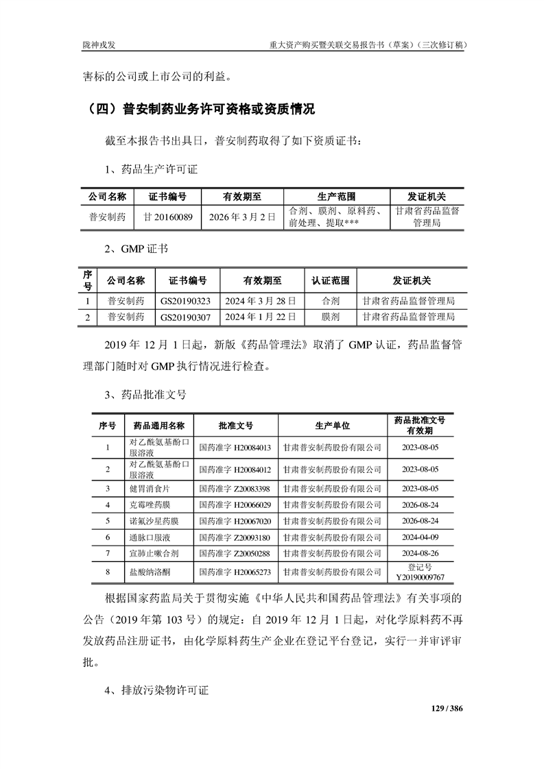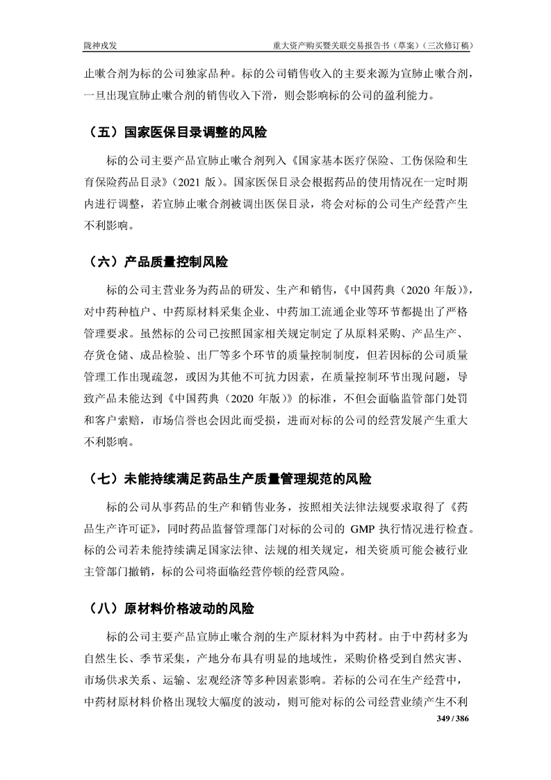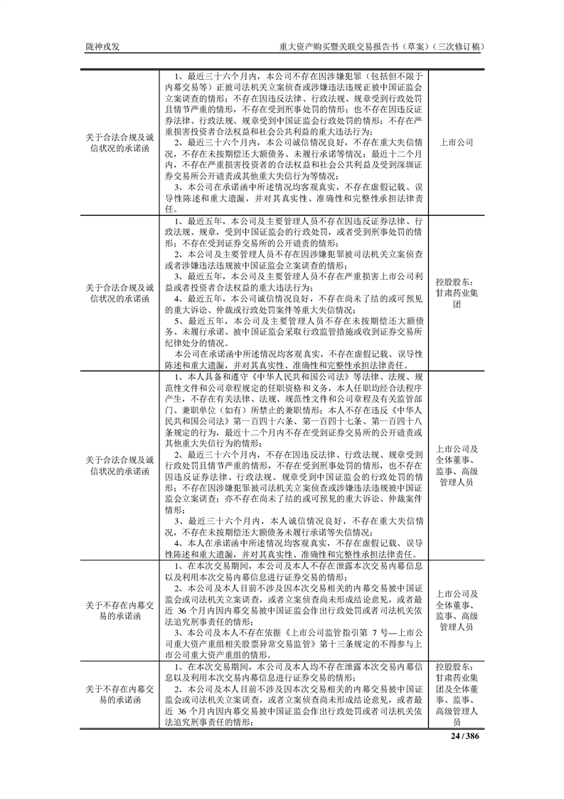 甘肅隴神戎發(fā)藥業(yè)股份有限公司重大資產(chǎn)購買暨關(guān)聯(lián)交易報告書(草案)(三次修訂稿)