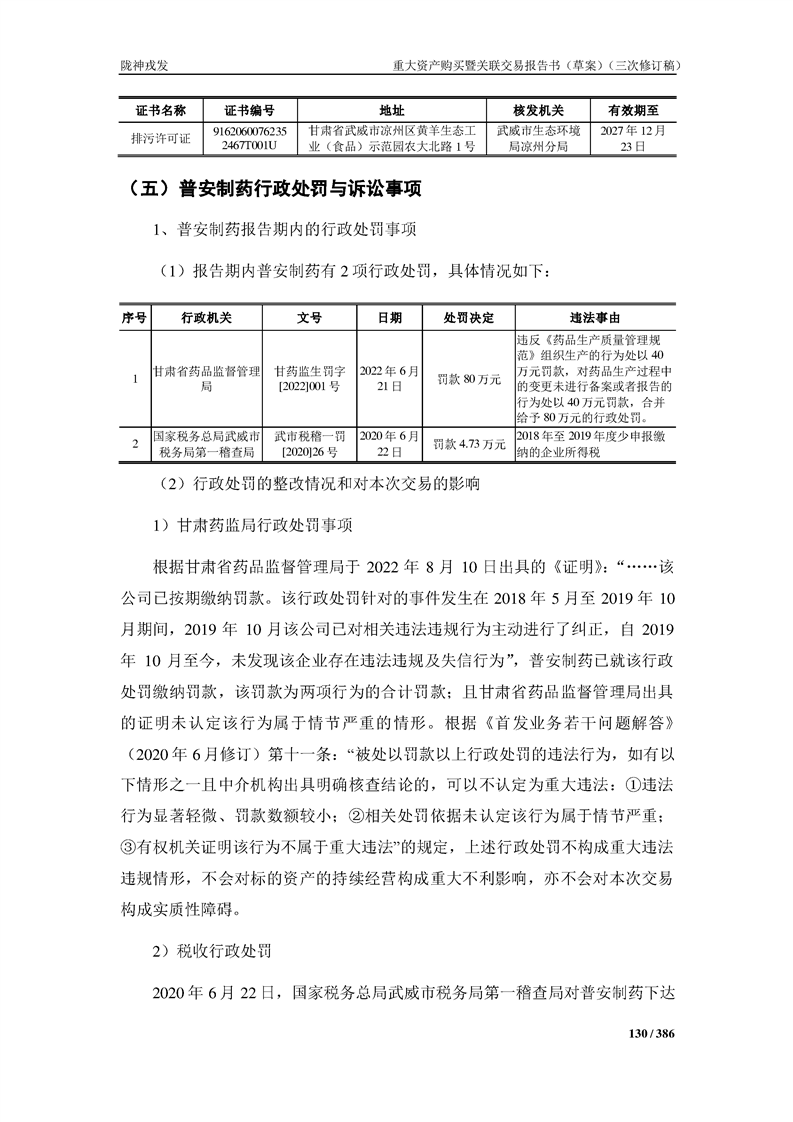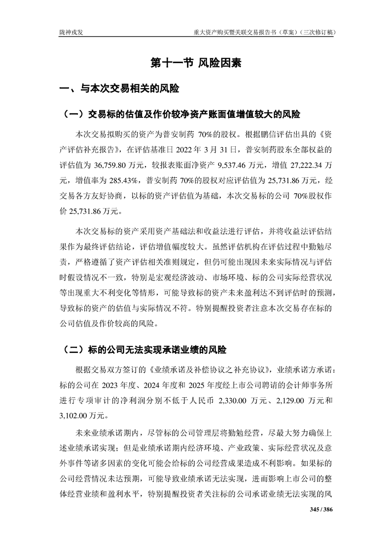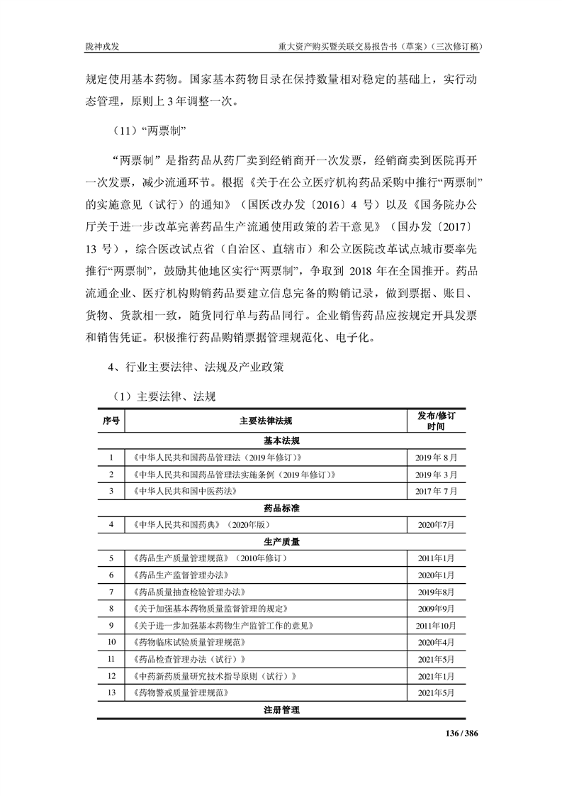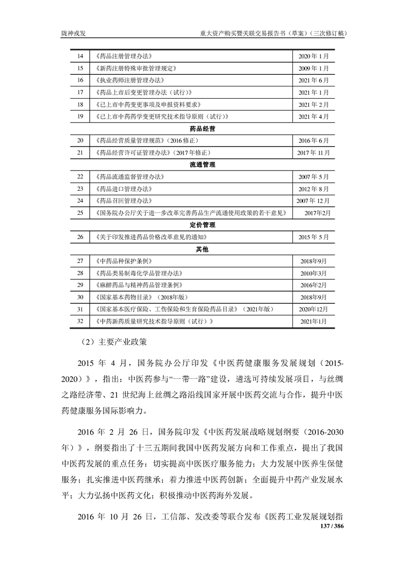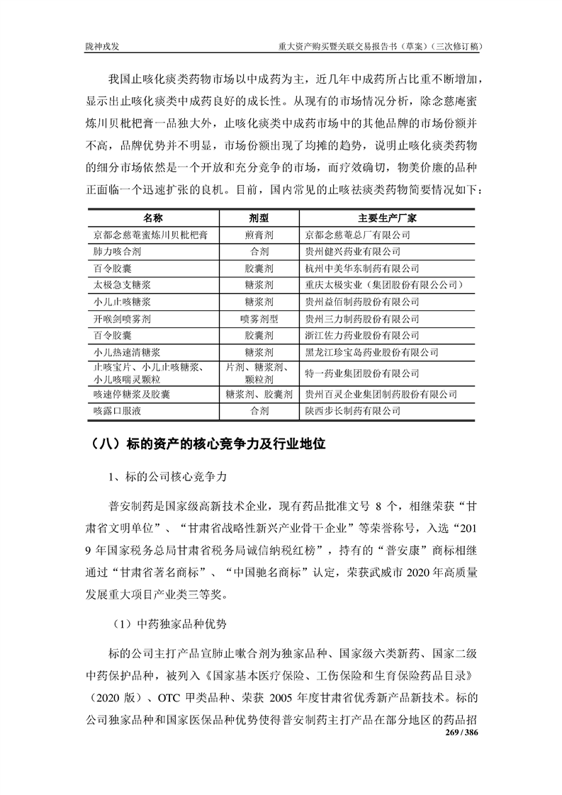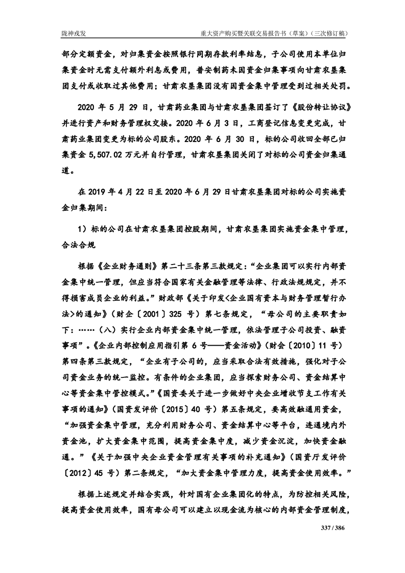 甘肅隴神戎發(fā)藥業(yè)股份有限公司重大資產(chǎn)購買暨關(guān)聯(lián)交易報告書(草案)(三次修訂稿)