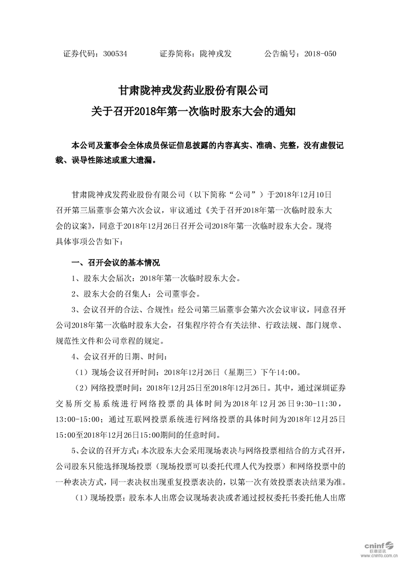 關于召開2018年第一次臨時股東大會的通知
