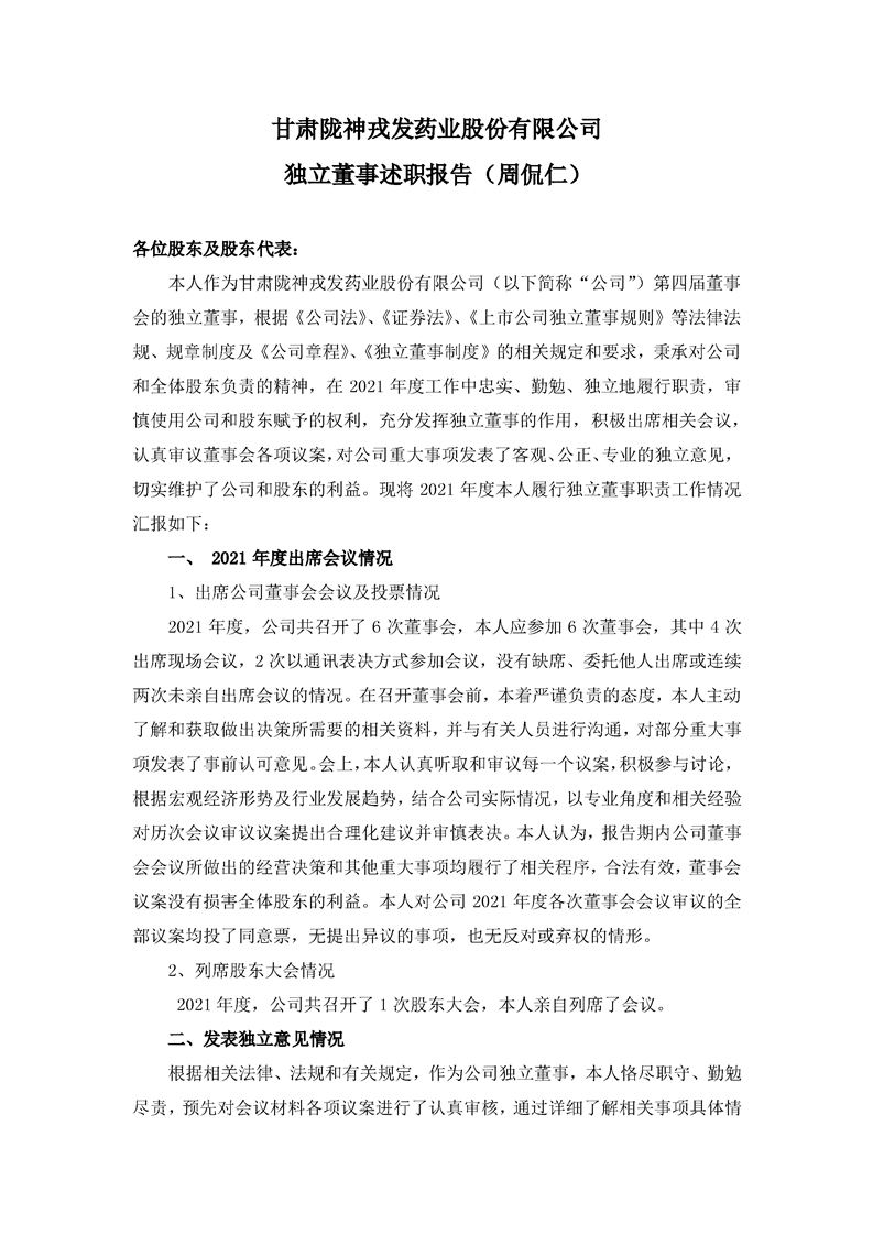 2021年獨(dú)立董事述職報(bào)告(周侃仁)