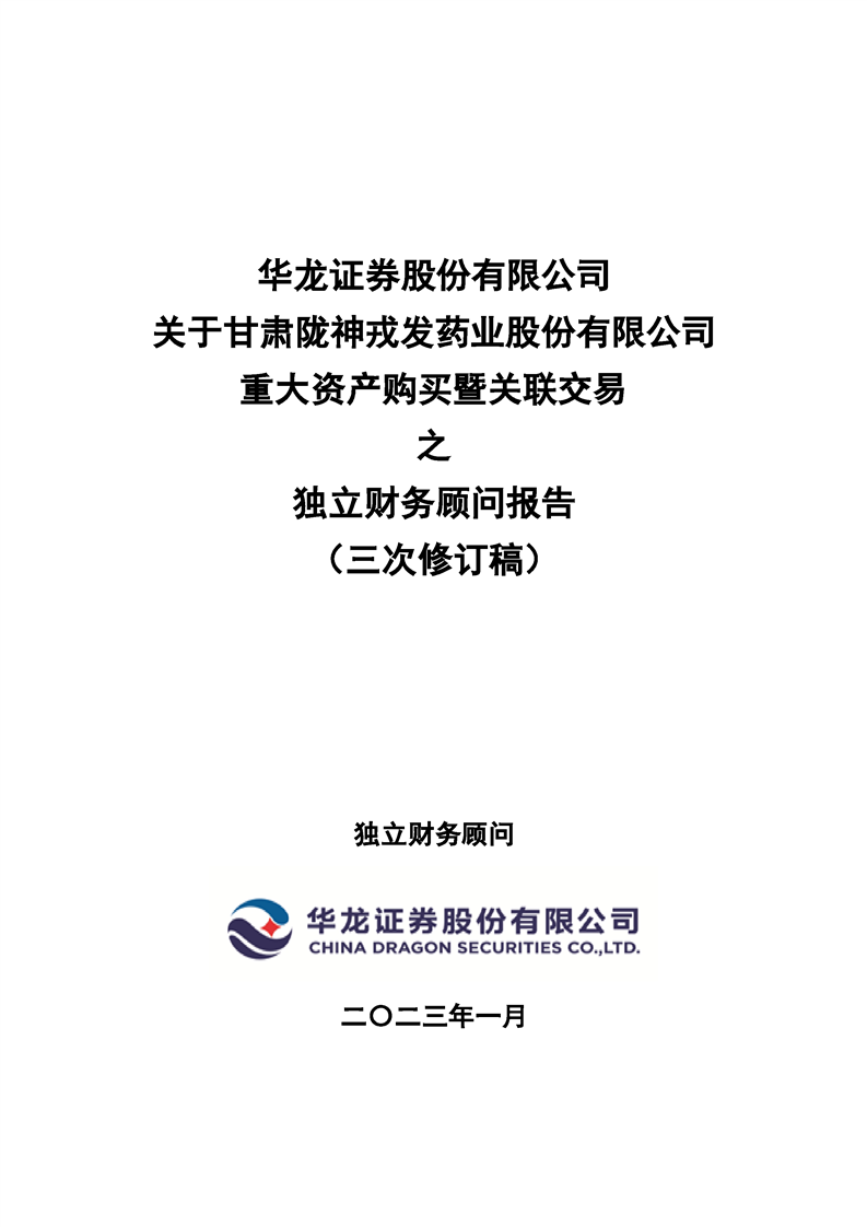華龍證券股份有限公司關(guān)于甘肅隴神戎發(fā)藥業(yè)股份有限公司重大資產(chǎn)購買暨關(guān)聯(lián)交易之獨立財務(wù)顧問報告(三次修訂稿)
