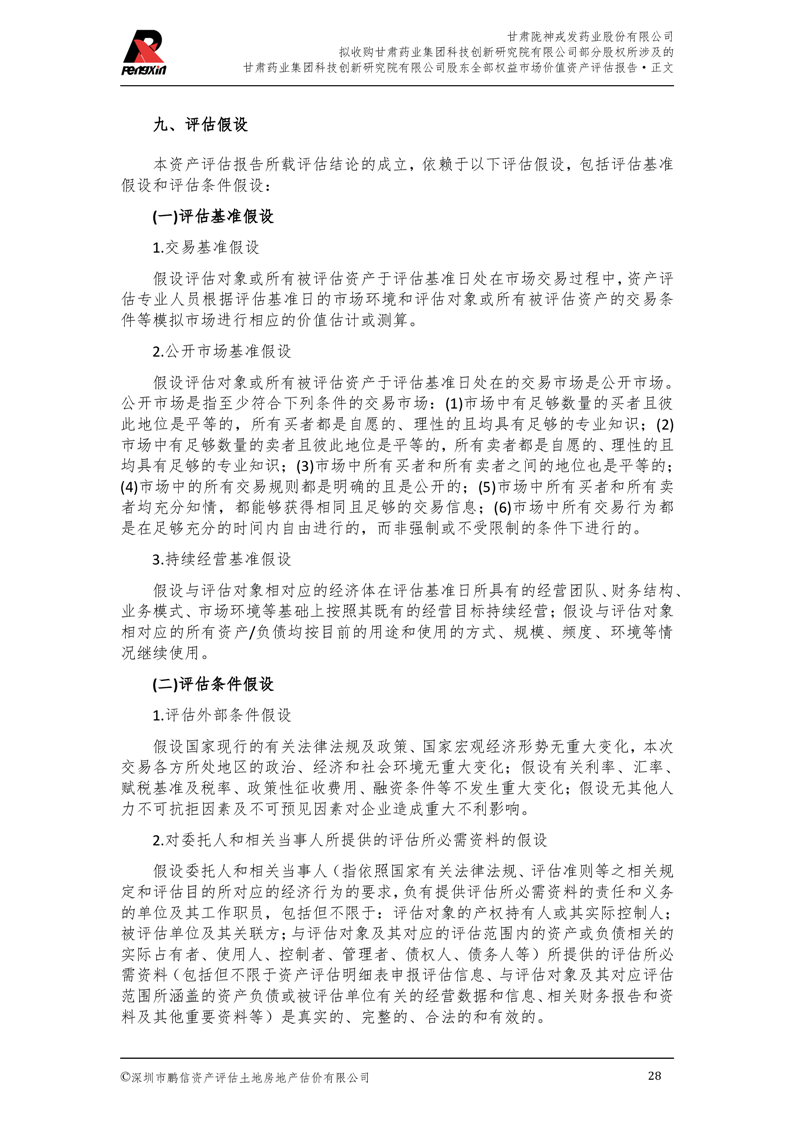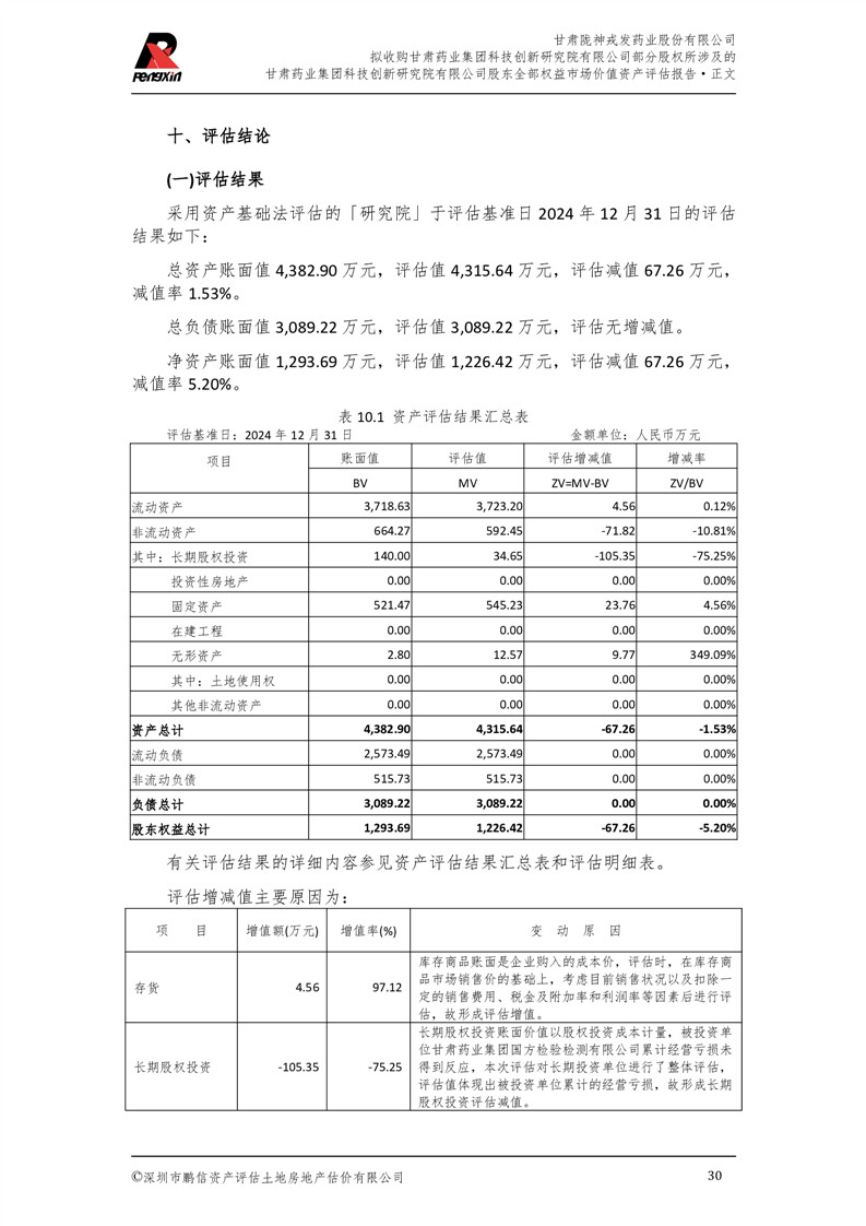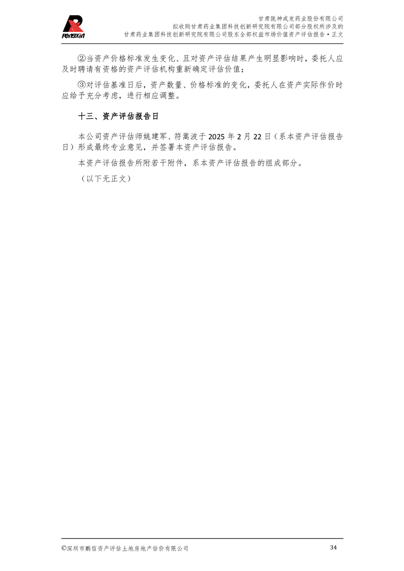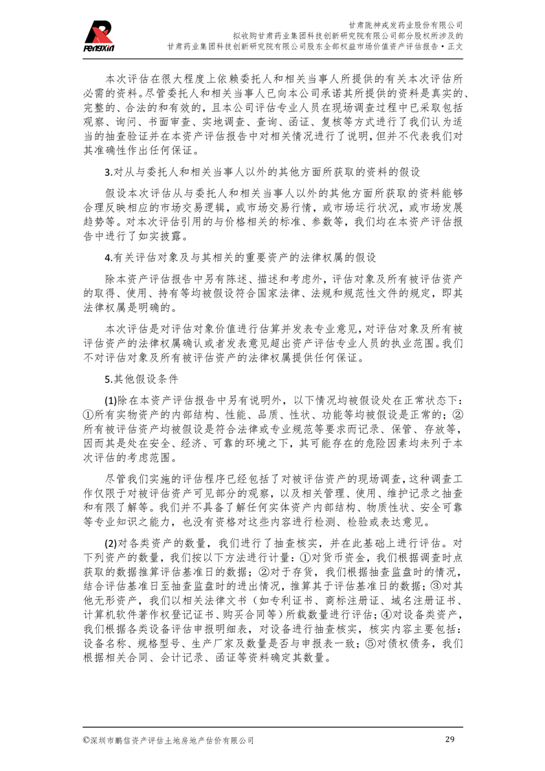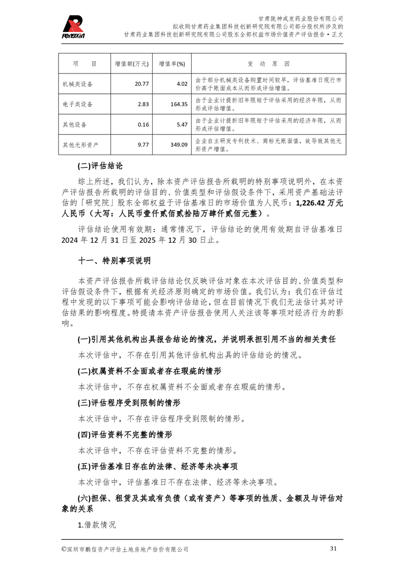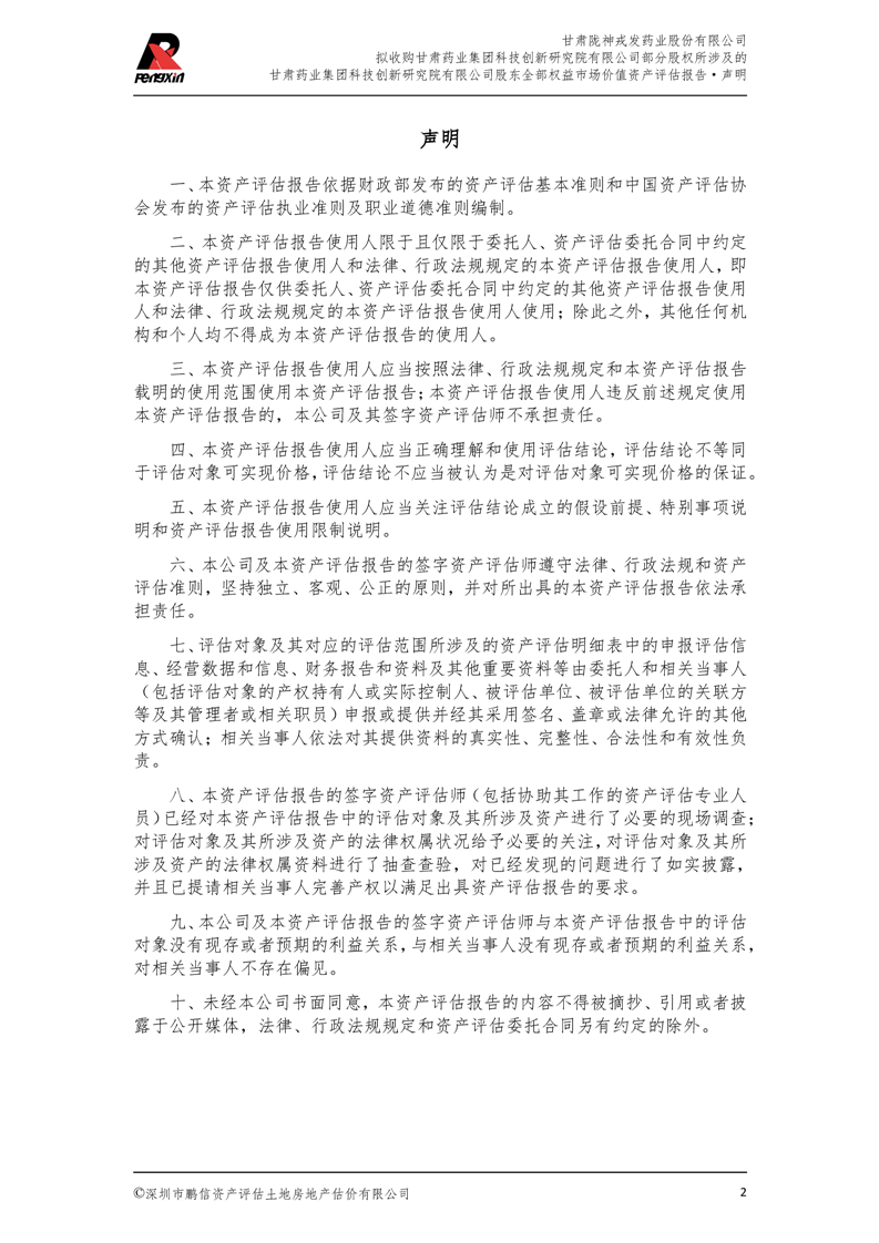 甘肅藥業(yè)集團科技創(chuàng)新研究院有限公司股東全部權(quán)益市場價值資產(chǎn)評估報告(鵬信資評報字[2025]第S039號)
