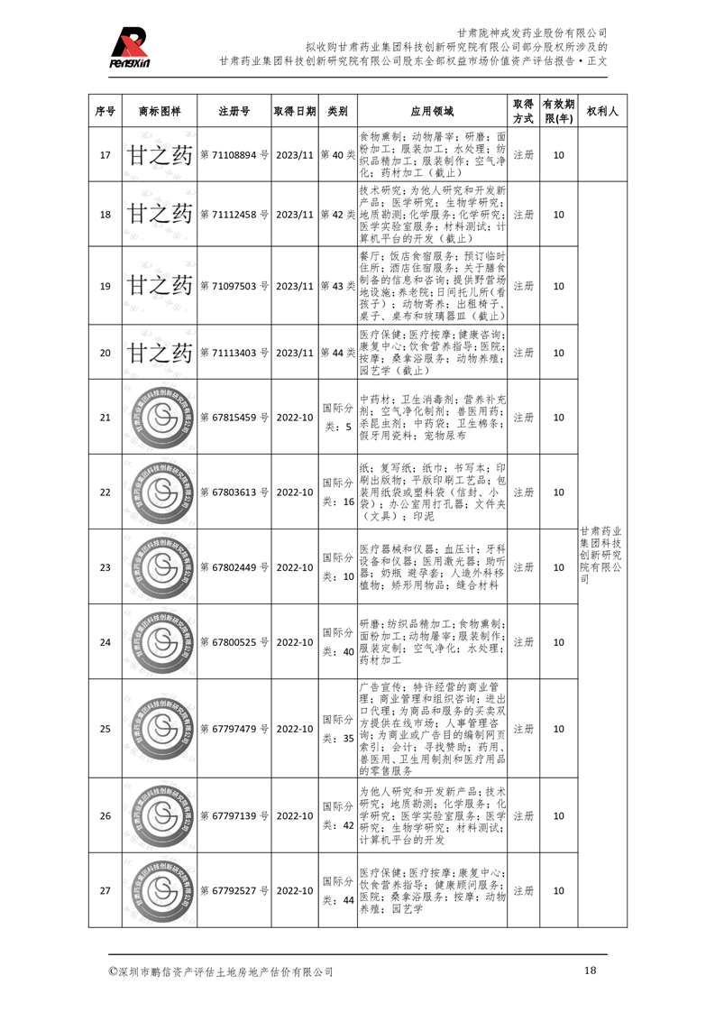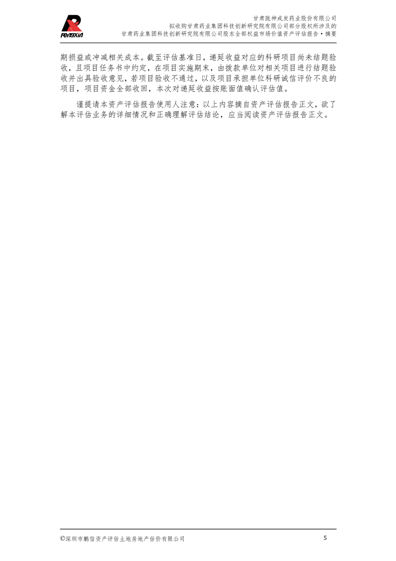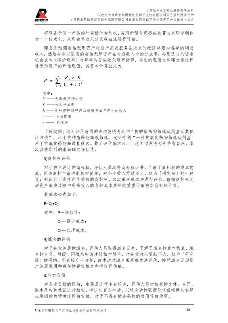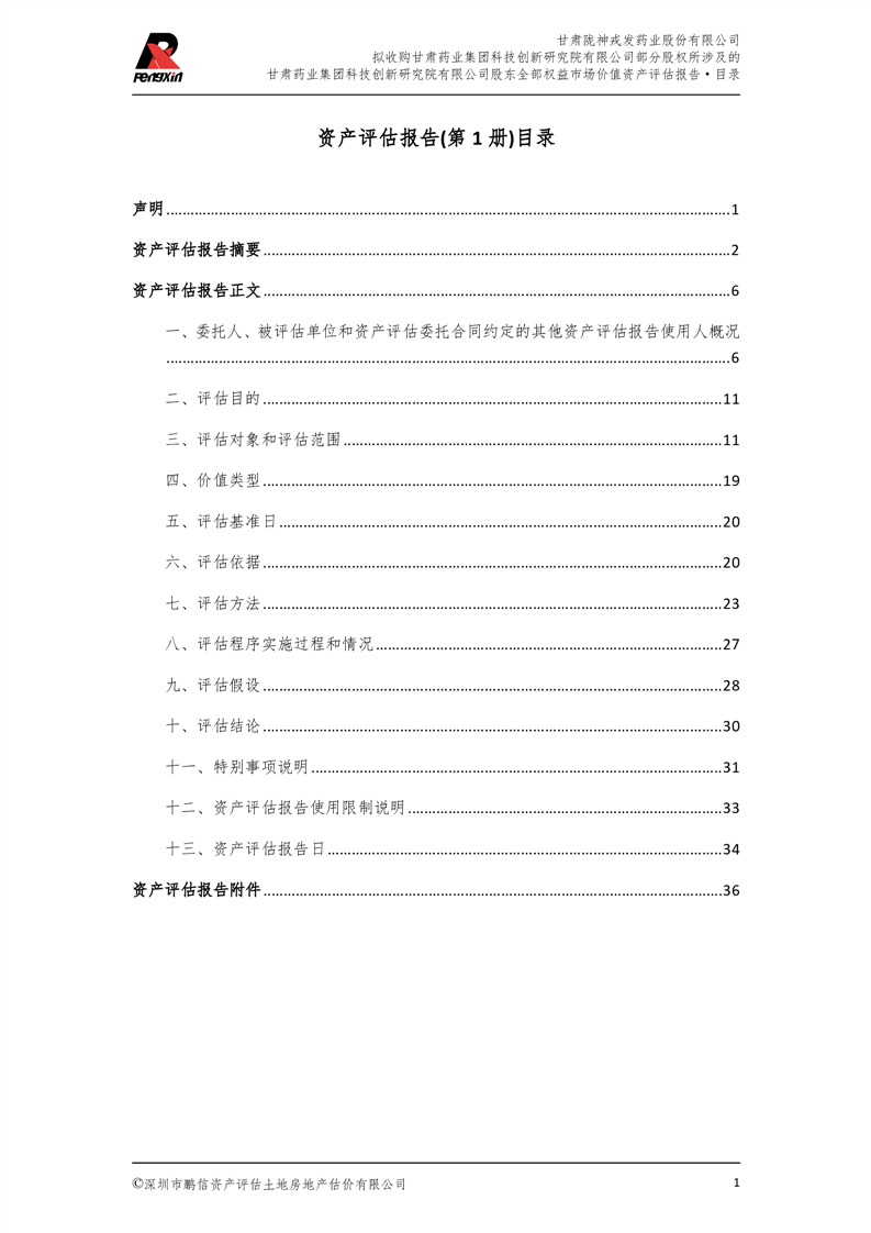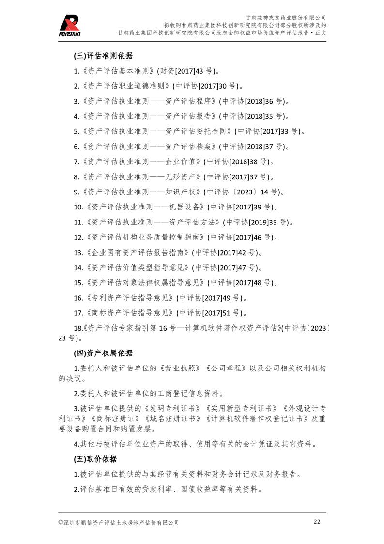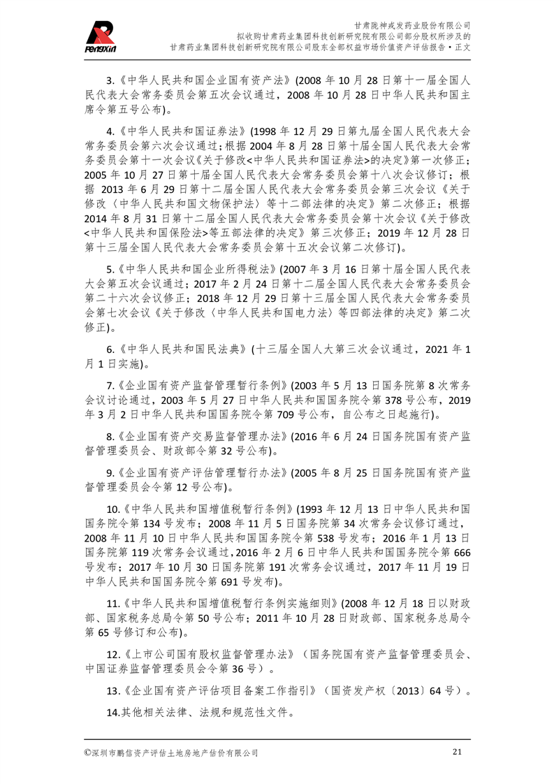 甘肅藥業(yè)集團科技創(chuàng)新研究院有限公司股東全部權(quán)益市場價值資產(chǎn)評估報告(鵬信資評報字[2025]第S039號)