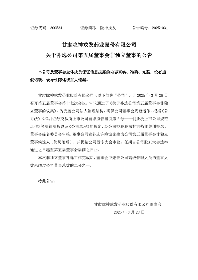 關(guān)于補(bǔ)選公司第五屆董事會非獨(dú)立董事的公告