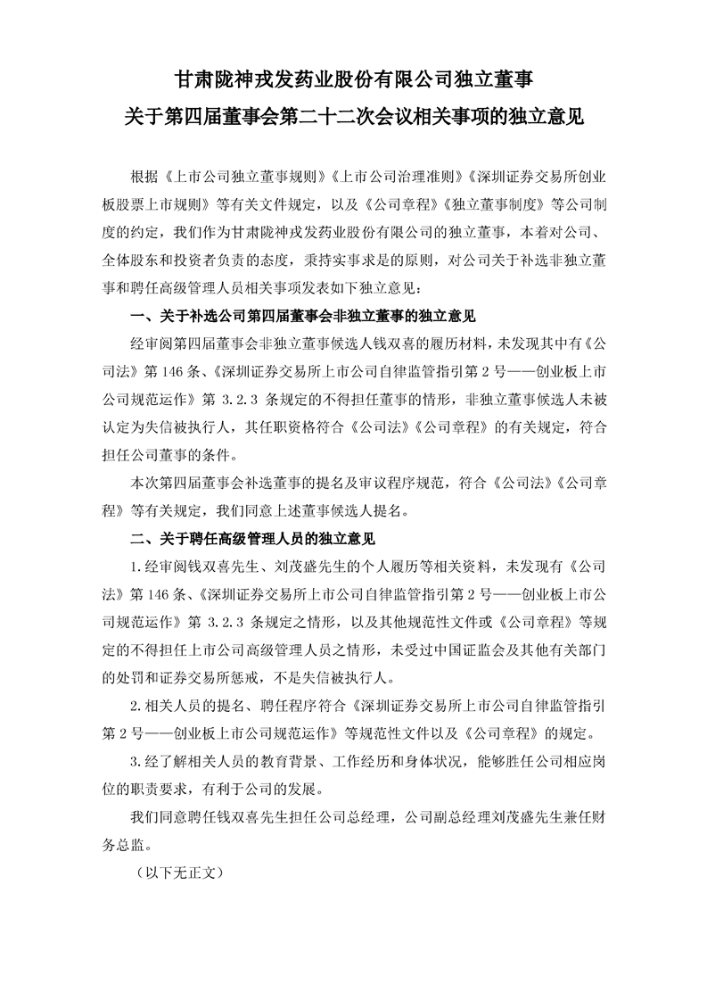 獨(dú)立董事關(guān)于第四屆董事會(huì)第二十二次會(huì)議相關(guān)事項(xiàng)的獨(dú)立意見(jiàn)