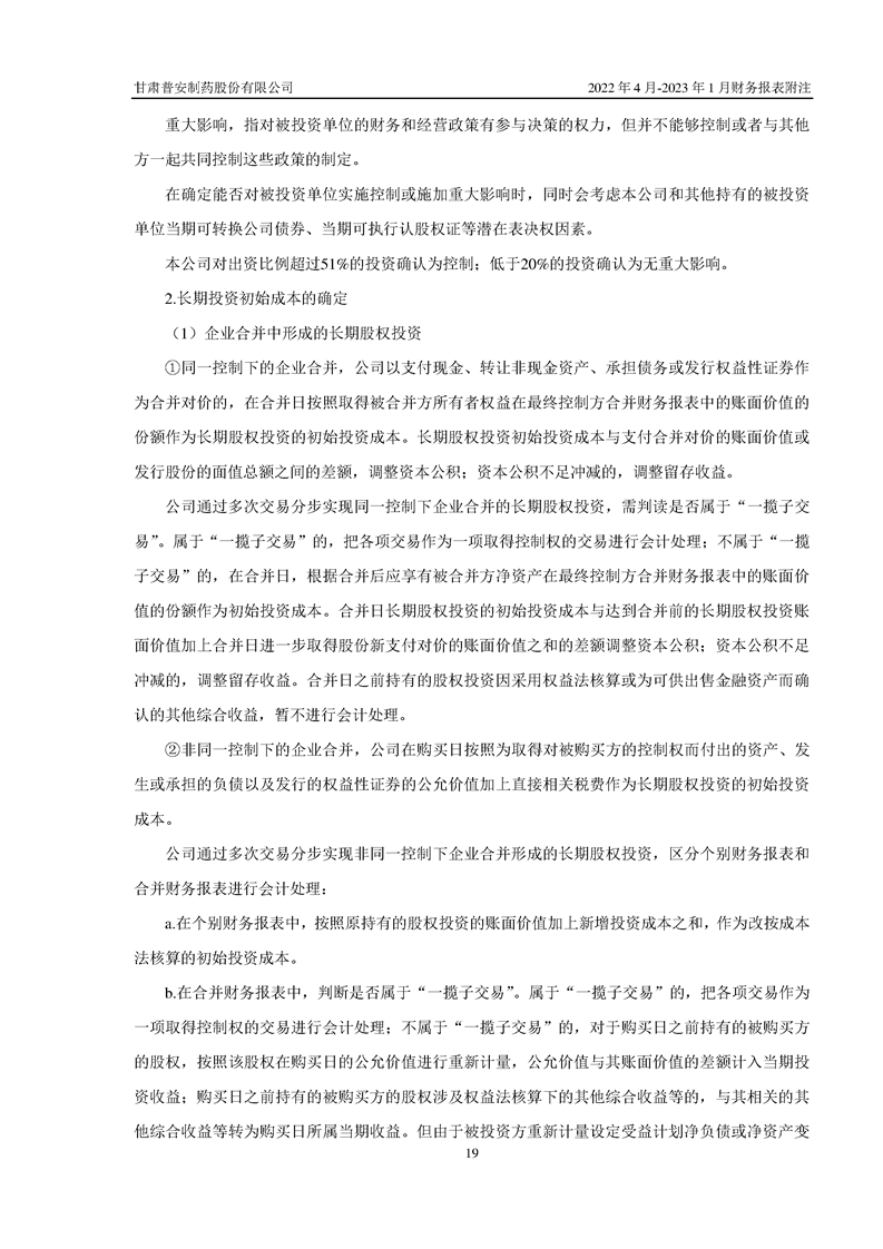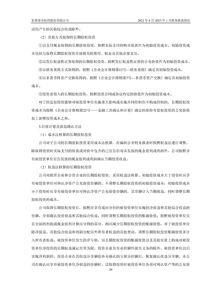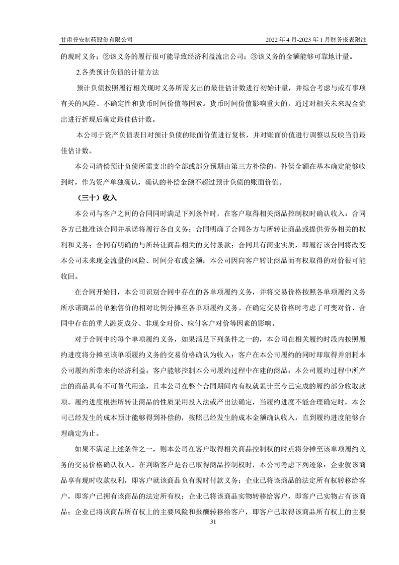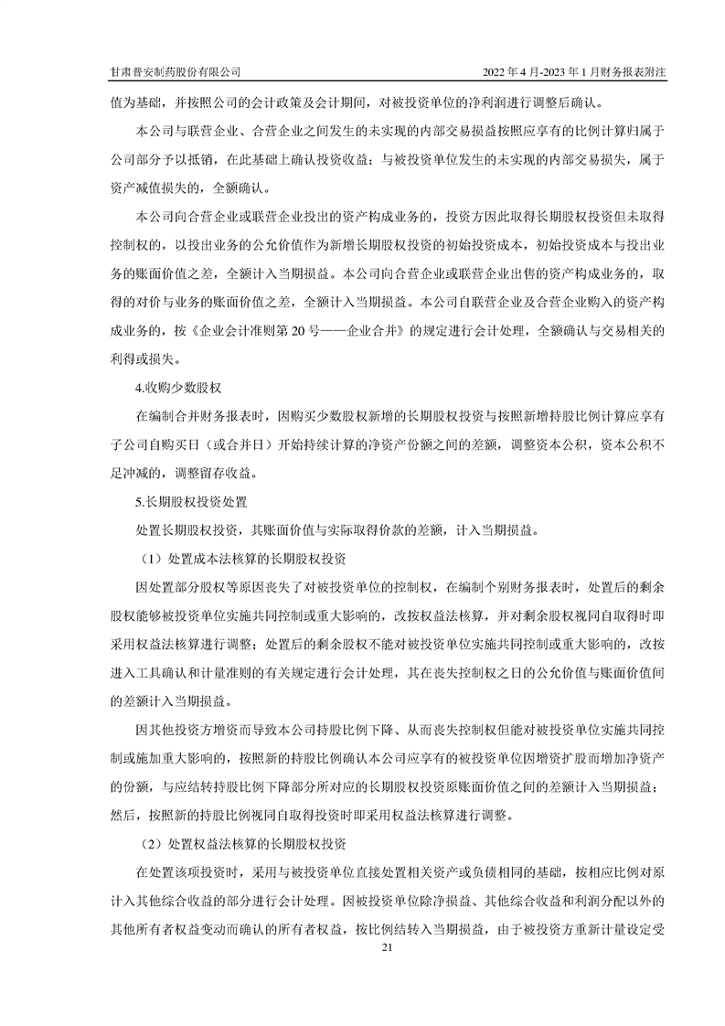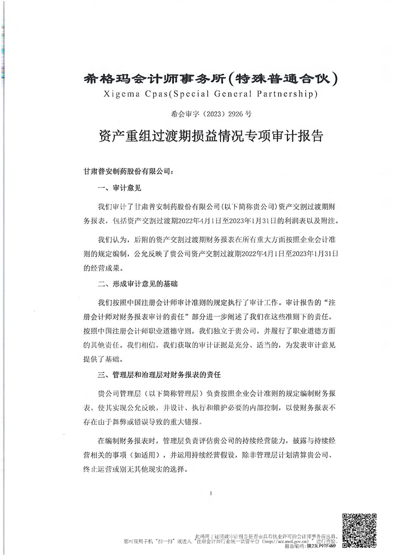 甘肅普安制藥股份有限公司資產(chǎn)重組過渡期損益情況專項(xiàng)審計(jì)報(bào)告