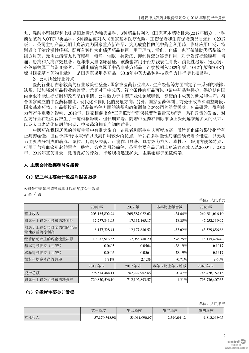 2018 年年度報(bào)告摘要