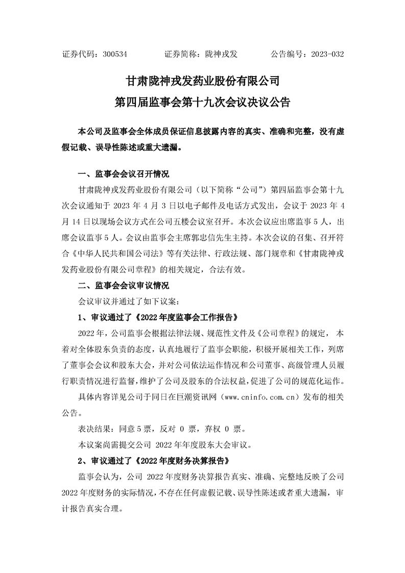 監(jiān)事會(huì)決議公告.