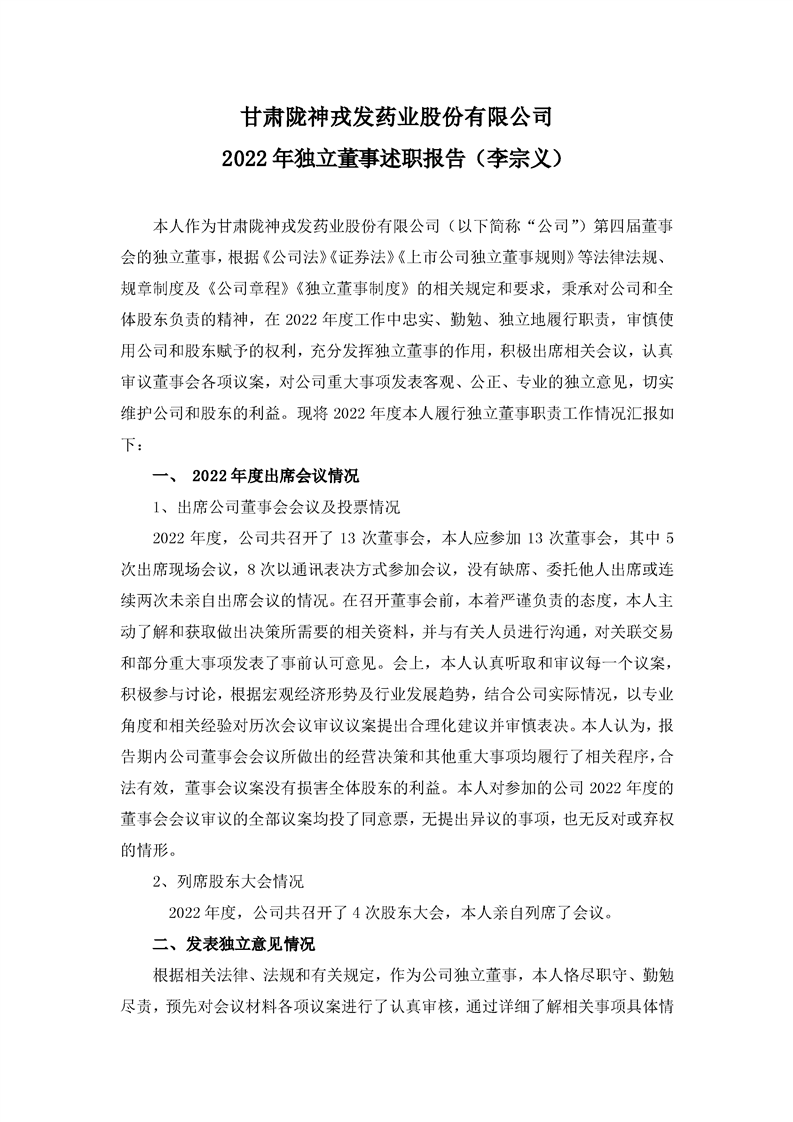 2022年獨立董事述職報告(李宗義)