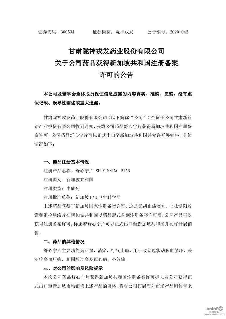 關(guān)于公司藥品獲得新加坡共和國(guó)注冊(cè)備案許可的公告