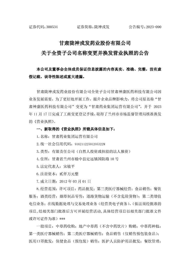 關于全資子公司名稱變更并換發(fā)營業(yè)執(zhí)照的公告