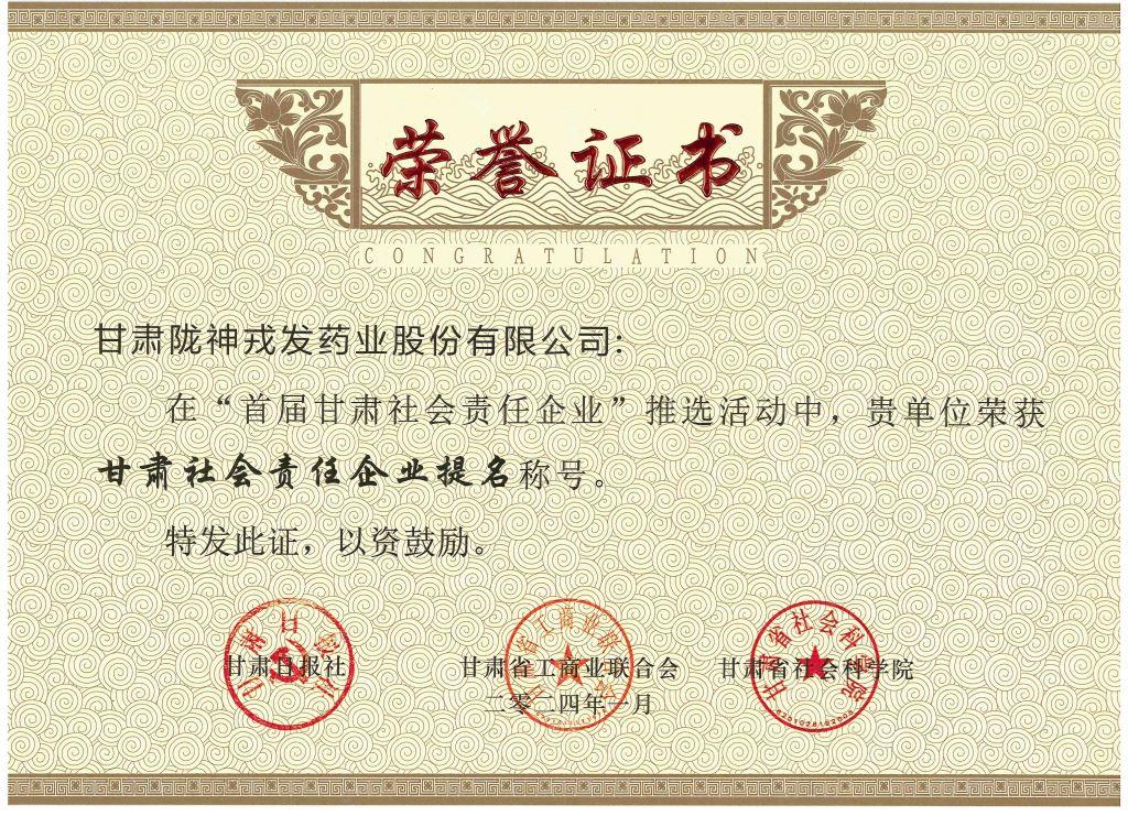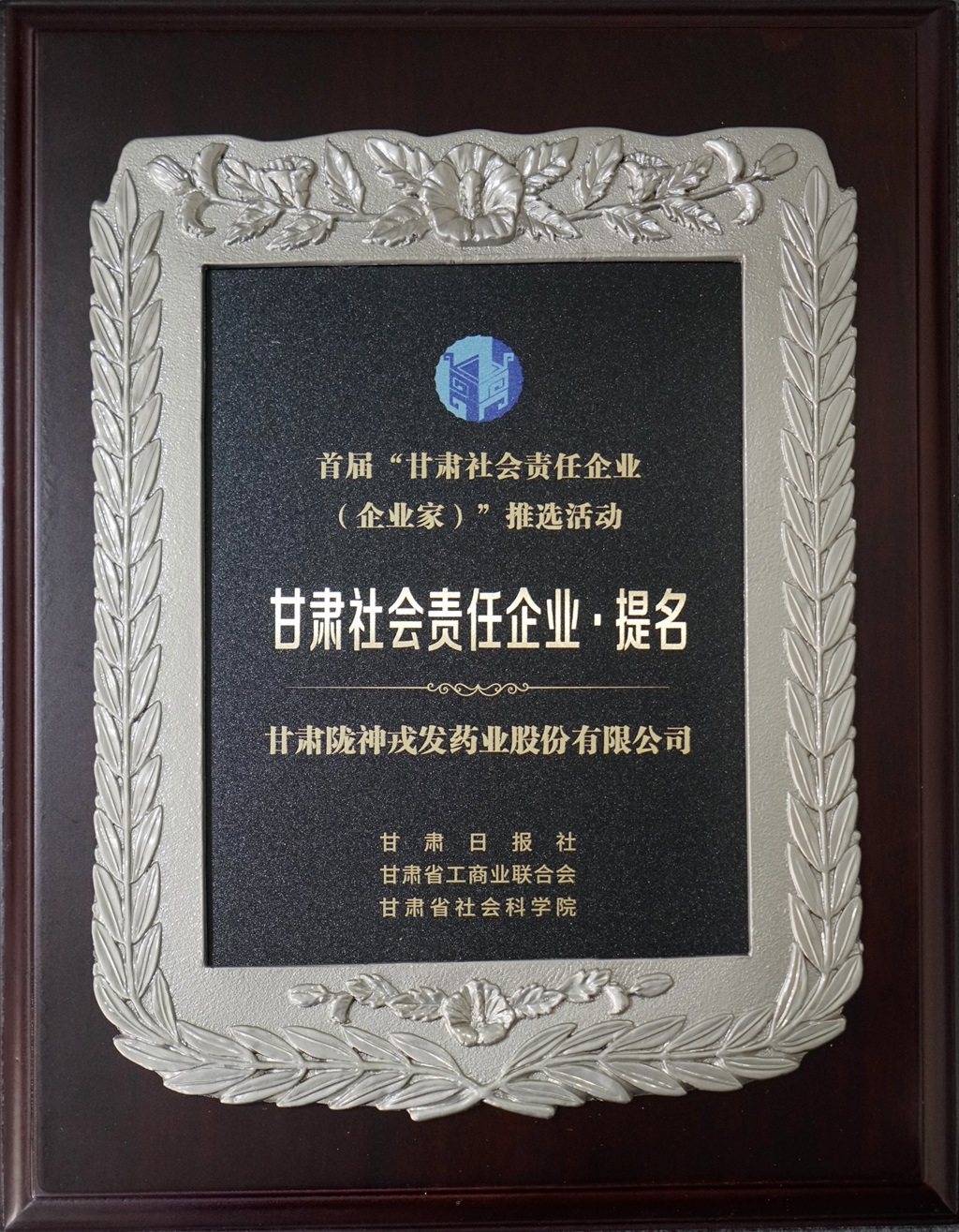 隴神戎發(fā)原黨委書記、董事長宋敏平榮獲“甘肅社會責(zé)任企業(yè)家”稱號;隴神戎發(fā)榮獲“甘肅社會責(zé)任企業(yè)提名”稱號