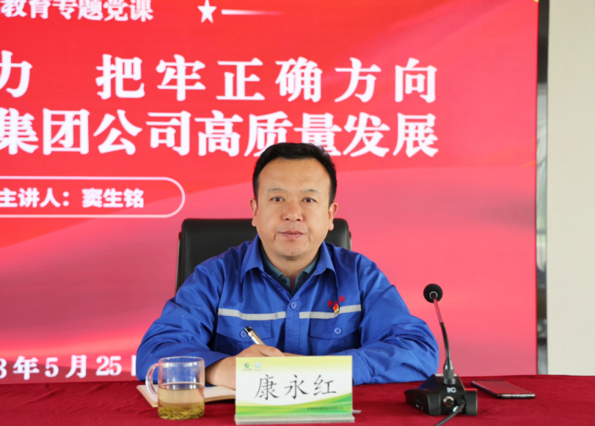 為深入貫徹落實習(xí)近平新時代中國特色社會主義思想和黨的二十大精神,按照集團(tuán)公司黨委關(guān)于學(xué)習(xí)貫徹習(xí)近平新時代中國特色社會主義思想主題教育的部署安排,5月25日下午,集團(tuán)公司黨委副書記、總經(jīng)理竇生銘深入普安公司一線,以《感悟思想偉力 把牢正確方向 堅定不移推動集團(tuán)公司高質(zhì)量發(fā)展》為題,講授了主題教育專題黨課。黨課由普安公司黨委書記、董事長康永紅主持。普安公司領(lǐng)導(dǎo)班子成員、全體干部職工聆聽黨課。