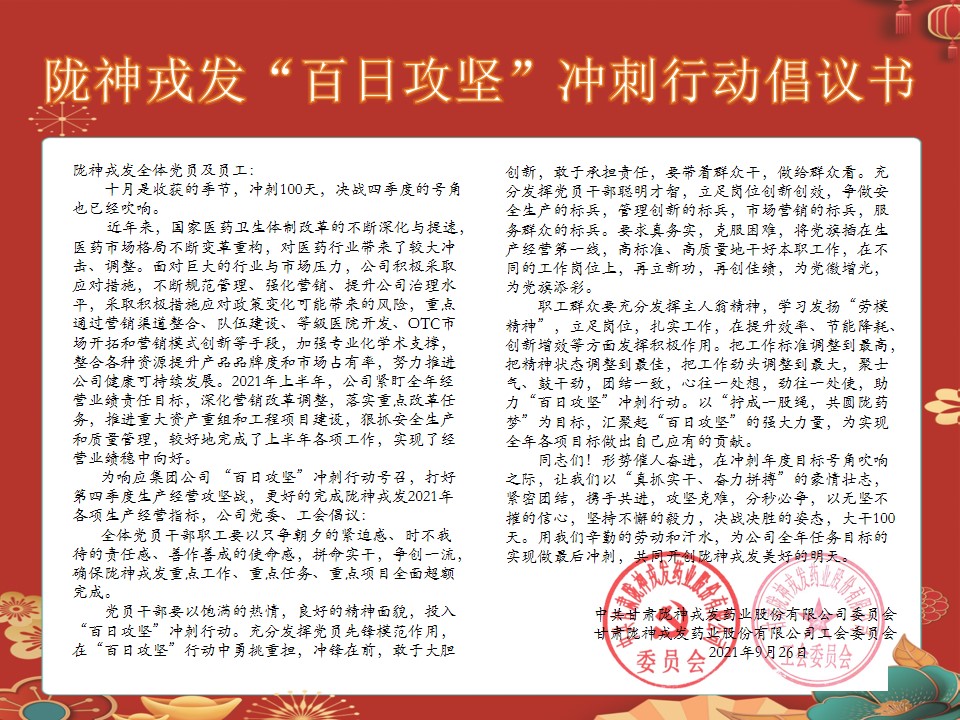 隴神戎發(fā)“百日攻堅”沖刺行動倡議書