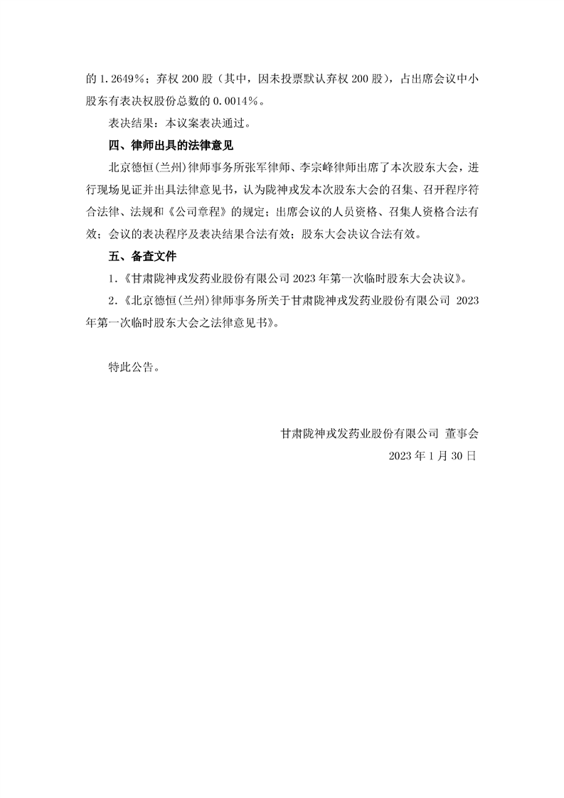 隴神戎發(fā):2023年第一次臨時股東大會決議公告