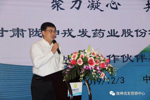 甘肅隴神戎發(fā)藥業(yè)股份有限公司董事、黨委書(shū)記、總經(jīng)理康永紅先生講話。康總經(jīng)理回顧了隴神戎發(fā)從建廠到現(xiàn)在的發(fā)展變化,從公司近年發(fā)起營(yíng)銷改革,設(shè)置大區(qū)辦事處,加強(qiáng)產(chǎn)品學(xué)術(shù)力打造等方面進(jìn)行了介紹,康總經(jīng)理表示,隴神戎發(fā)將抓住隴藥產(chǎn)業(yè)發(fā)展及甘肅中藥大品種培育的時(shí)機(jī),在甘肅藥業(yè)集團(tuán)這個(gè)更高的平臺(tái)上,增大市場(chǎng)投入力度,打造產(chǎn)品升級(jí),推進(jìn)隴藥創(chuàng)新,與各位合作伙伴攜手前行,共創(chuàng)未來(lái)!