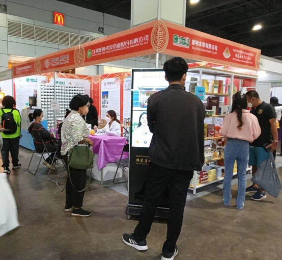 此次展會,隴神戎發(fā)受邀與(泰國)唐明本草有限公司聯(lián)合參展,展會上特別定制了隴神戎發(fā)門頭及背景板,廣告機(jī)液晶屏幕滾動循環(huán)播放公司宣傳片和產(chǎn)品介紹。隴神戎發(fā)展位重點(diǎn)突出,主要展示了隴神戎發(fā)獨(dú)家產(chǎn)品元胡止痛滴丸、七味溫陽膠囊、復(fù)方丹參片等自有產(chǎn)品,重點(diǎn)推介宣傳2021年已在泰國上市的保健產(chǎn)品黃芪當(dāng)歸膠囊。