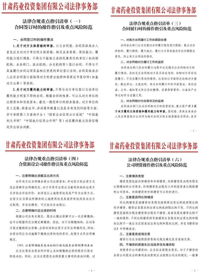 依法合規(guī)是全面落實依法治企戰(zhàn)略部署的客觀需求,也是國有企業(yè)依法推進治理體系及治理能力現(xiàn)代化的必然選擇。甘肅藥業(yè)集團始終堅持以習(xí)近平新時代中國特色社會主義思想為指導(dǎo),認真貫徹落實習(xí)近平法治思想,緊緊圍繞中心發(fā)展大局,找定位、強對標(biāo),創(chuàng)新開展“6+1”行動,切實推進合規(guī)管理各項工作走深走實。