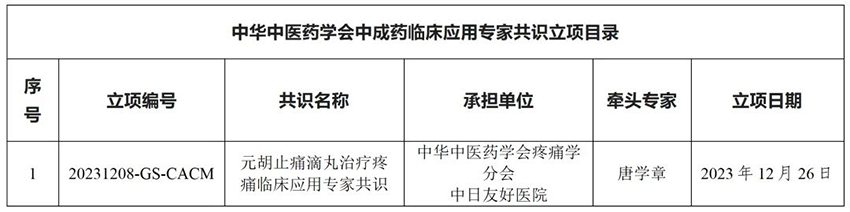為進(jìn)一步做好中醫(yī)藥標(biāo)準(zhǔn)化工作,總結(jié)中成藥臨床應(yīng)用的優(yōu)勢(shì)與特點(diǎn),全面收集專家的臨床應(yīng)用經(jīng)驗(yàn)及中成藥循證醫(yī)學(xué)證據(jù),形成共識(shí),為中醫(yī)臨床診療指南制修訂工作提供參考,中華中醫(yī)藥學(xué)會(huì)標(biāo)準(zhǔn)化辦公室組織相關(guān)領(lǐng)域?qū)<覍?duì)《元胡止痛滴丸治療疼痛臨床應(yīng)用專家共識(shí)》進(jìn)行了立項(xiàng)審查,經(jīng)學(xué)會(huì)辦公會(huì)審批,現(xiàn)予以公告。
