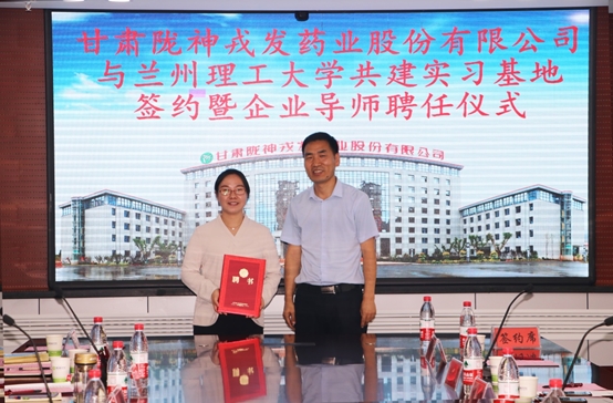 揭牌儀式之后,甘肅隴神戎發(fā)藥業(yè)股份有限公司與蘭州理工大學(xué)生命科學(xué)與工程學(xué)院實(shí)習(xí)基地現(xiàn)場簽約,蘭州理工大學(xué)生命科學(xué)與工程學(xué)院任海偉介紹了學(xué)院的情況和合作計劃,宣讀導(dǎo)師聘任文件,并頒發(fā)了企業(yè)導(dǎo)師聘書。