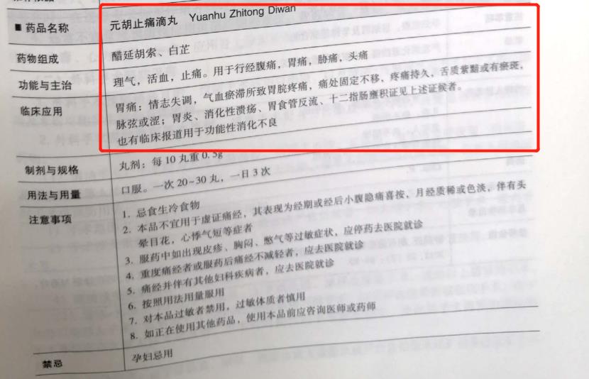 《中成藥臨床應用指南-消化疾病分冊》元胡止痛滴丸收載內容