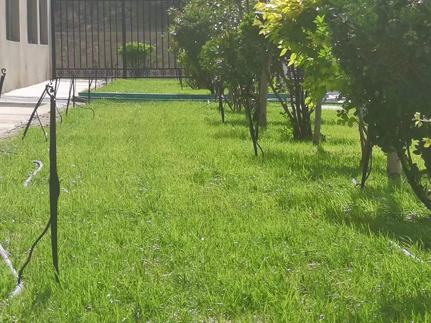 這半年來,公司組織人員,先對地面進(jìn)行了一次次清理,撿拾掉雜草和較大的石塊,換掉板結(jié)的舊土,填上疏松肥沃的新土,再用水灌溉至澆透。等到土壤微干松散,用鐵鍬對土地做了一次深翻,使土地軟化并平地,均勻的撒上種子后,用耙子抹平,最后還要覆蓋上膜,布置好澆灌系統(tǒng)。整個工作流程說起來簡單,但都實實在在地傾注了每一位工作人員的心血和汗水。