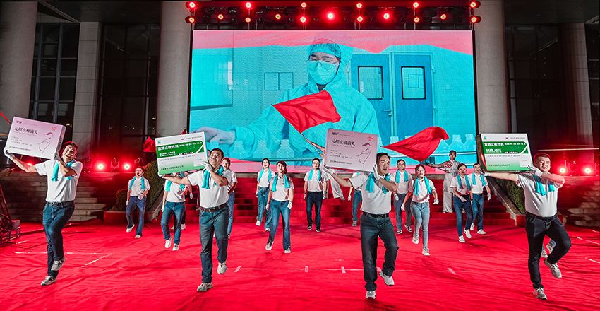中秋逢國慶,天涯共此時,9月27日,正逢雙節(jié)來臨之際,伴隨著秋高氣爽的傍晚,在甘肅藥業(yè)投資集團、甘肅隴神戎發(fā)藥業(yè)股份有限公司榆中廠區(qū),開展了甘肅藥業(yè)集團“永遠跟黨走•唱響新時代”迎“國慶”文藝匯演活動,豐富職工精神文化生活的同時,也展示了甘肅藥業(yè)投資集團廣大干部職工濃厚的愛國愛黨積極向上的政治素養(yǎng)和高尚的紅色情懷。活動在一首鏗鏘有力的“國際歌”大合唱中緩緩拉開序幕。
