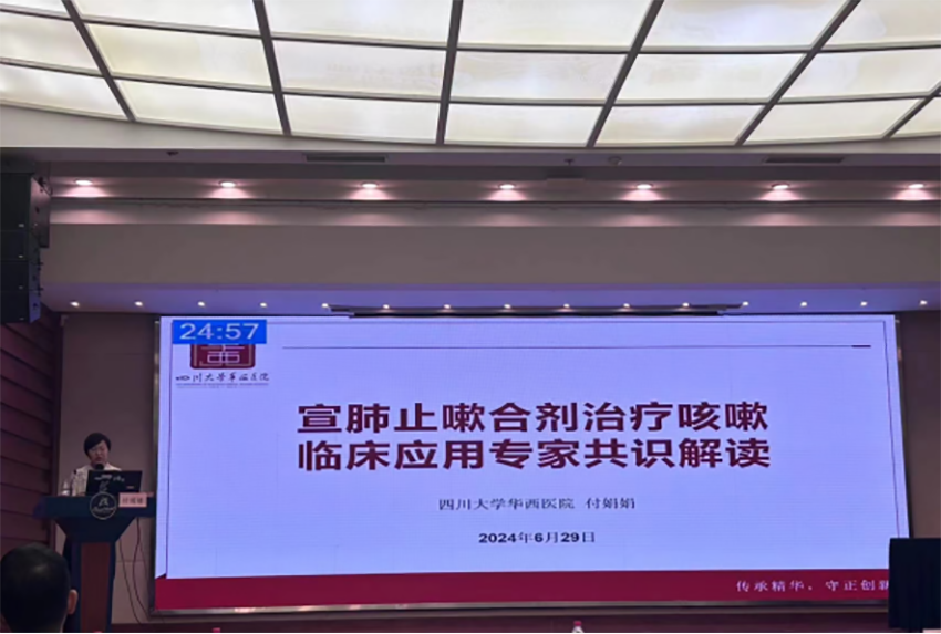 四川省中醫(yī)藥學會肺系病專業(yè)委員會副主任委員、四川大學華西醫(yī)院付娟娟教授介紹,宣肺止嗽合劑源自《醫(yī)學心悟》中經(jīng)典名方“止嗽散”,歷經(jīng)數(shù)百年的驗證,由多位名老中醫(yī)在原方基礎(chǔ)上加減化裁而成。付娟娟對《宣肺止嗽合劑治療咳嗽臨床應(yīng)用專家共識》進行了專題解讀,從宣肺止嗽合劑的安全性、有效性以及依賴性研究等方面進行系統(tǒng)詮釋,肯定了宣肺止嗽合劑治療效果。