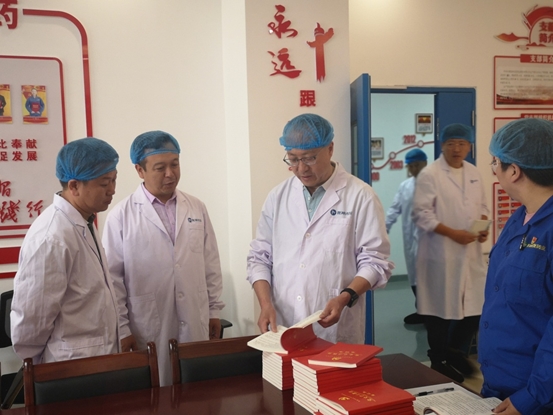 張世俊一行先后到隴神戎發(fā)產(chǎn)品陳列室、制劑車間、酒精庫、污水處理站、鍋爐房、檢驗室等區(qū)域,圍繞企業(yè)發(fā)展歷程、產(chǎn)品生產(chǎn)、項目建設、安全管理及職工生活等各個方面,深入一線進行實地調(diào)研。調(diào)研過程中,張世俊副總經(jīng)理每到一處,總是向在場的一線員工詳細了解關鍵環(huán)節(jié)的具體問題,并通過列舉外部企業(yè)的典型案例來啟發(fā)和引導干部職工來解決實際問題和改進工作思路。在生產(chǎn)黨支部黨員活動室,張世俊副總經(jīng)理在翻閱了生產(chǎn)一線職工的黨史學習筆記,參觀了黨員活動陣地和聽取了黨支部活動開展情況介紹后,贊揚了公司在黨員教育和職工文化生活方面所做出的成績。