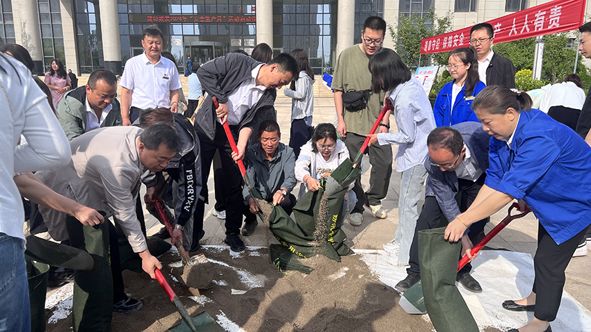 在“安全承諾踐諾”簽字活動(dòng)結(jié)束后,進(jìn)入到此次防汛工作“增磚加瓦”裝沙袋活動(dòng)中。時(shí)值汛期,為提前做好防汛準(zhǔn)備,全體職工積極參與,大家團(tuán)結(jié)協(xié)作,迅速將沙子裝入沙袋,通過(guò)開(kāi)展裝沙袋活動(dòng),體現(xiàn)了隴神人擰成“一股繩”,筑牢防汛“安全堤”的堅(jiān)定信心。