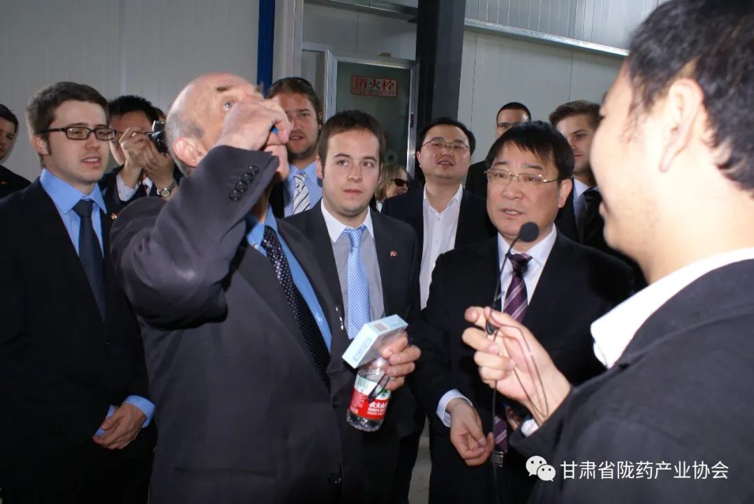 成立大會上中國醫(yī)藥企業(yè)管理協(xié)會會長于明德了解隴神戎發(fā)產(chǎn)品