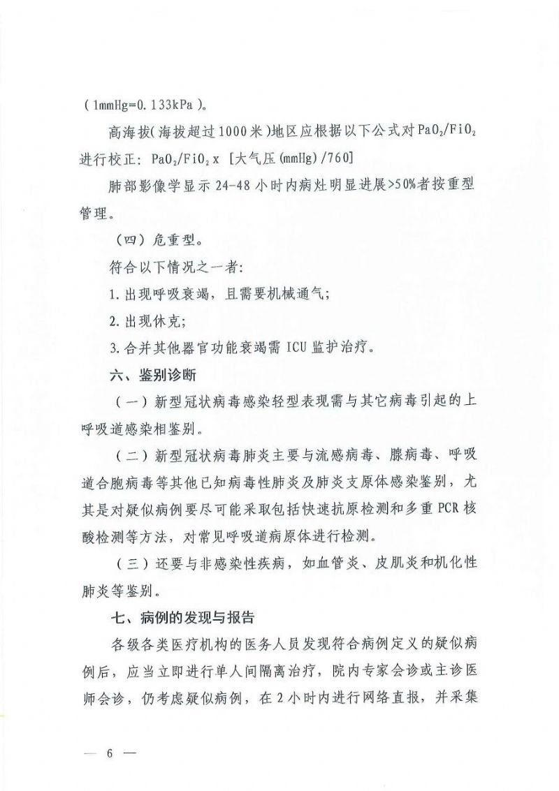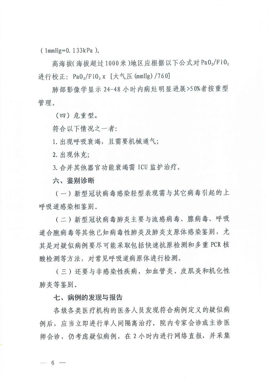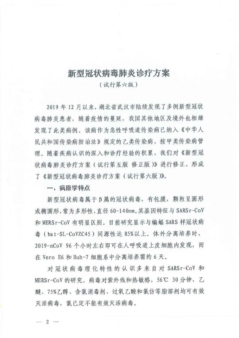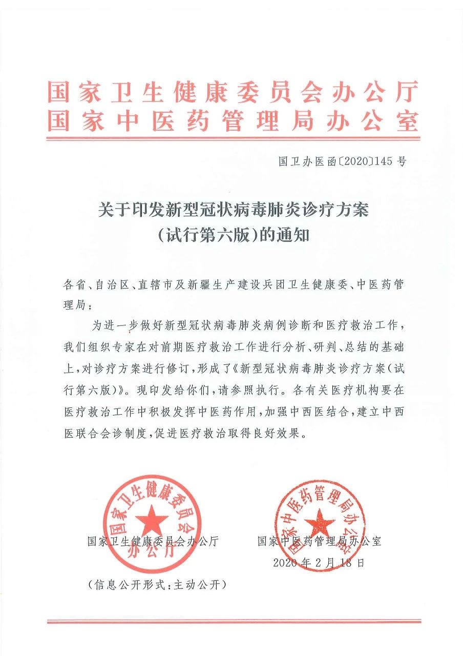 關(guān)于印發(fā)新型冠狀病毒感染的肺炎診療方案(試行第六版)的通知