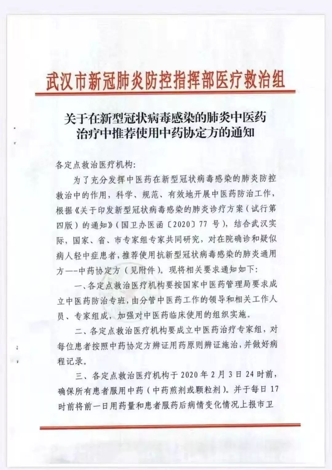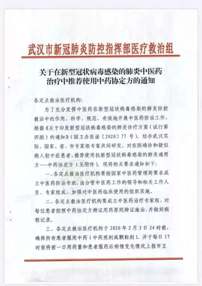 2月2日,武漢市新冠肺炎指揮醫(yī)療救治組發(fā)布了更新的中藥協(xié)定方案。看下圖。