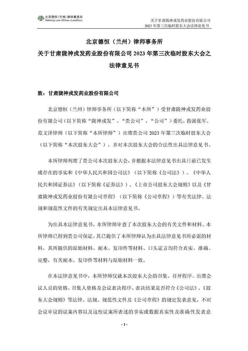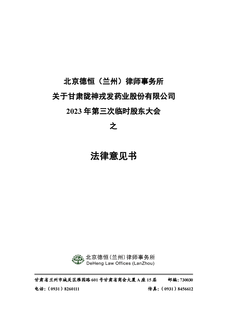 2023年第三次臨時(shí)股東大會(huì)法律意見書