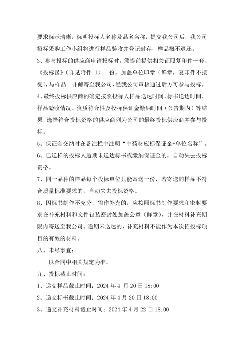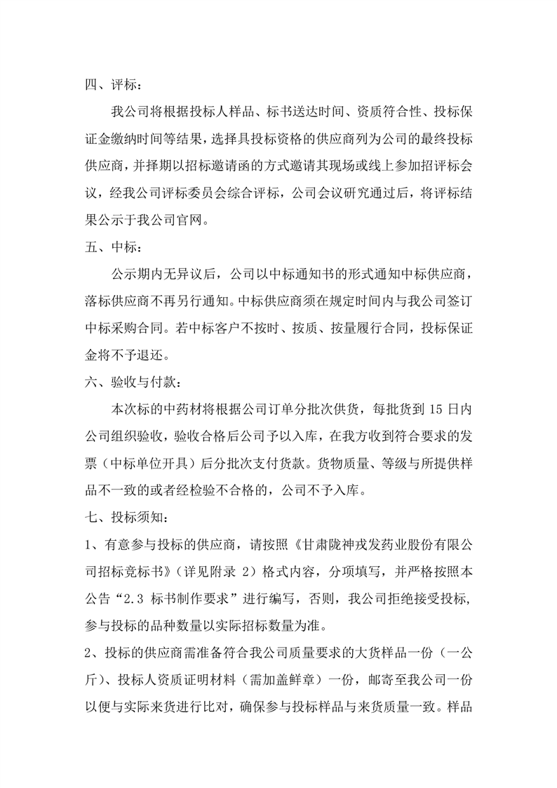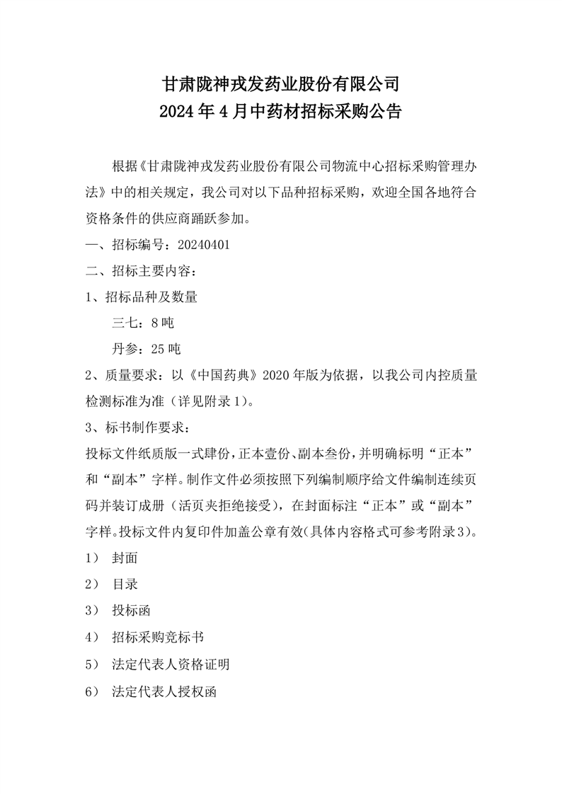 甘肅隴神戎發(fā)藥業(yè)股份有限公司 2024年4月中藥材招標采購公告