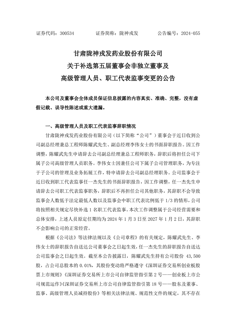 關(guān)于補(bǔ)選第五屆董事會(huì)非獨(dú)立董事及高級管理人員、職工代表監(jiān)事變更的公告