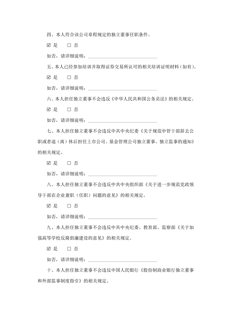獨(dú)立董事候選人聲明與承諾