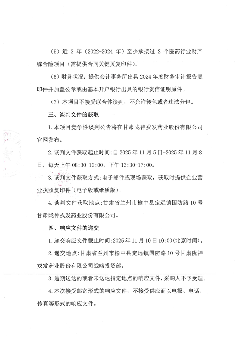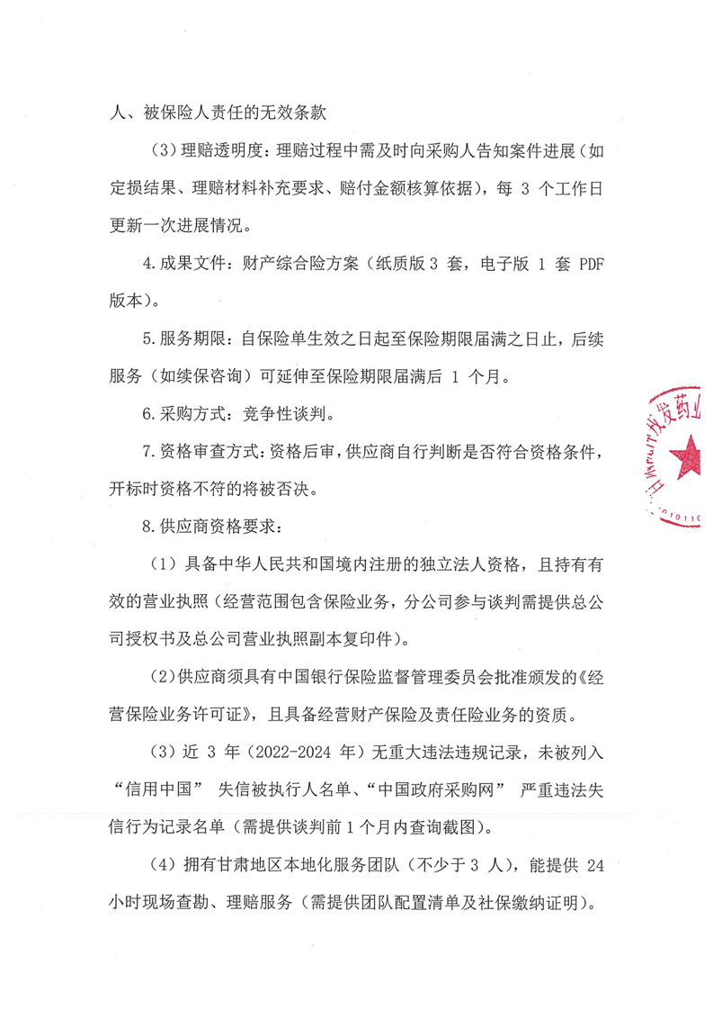 甘肅隴神戎發(fā)藥業(yè)股份有限公司2025-2026年度財(cái)產(chǎn)綜合險(xiǎn)采購項(xiàng)目公告