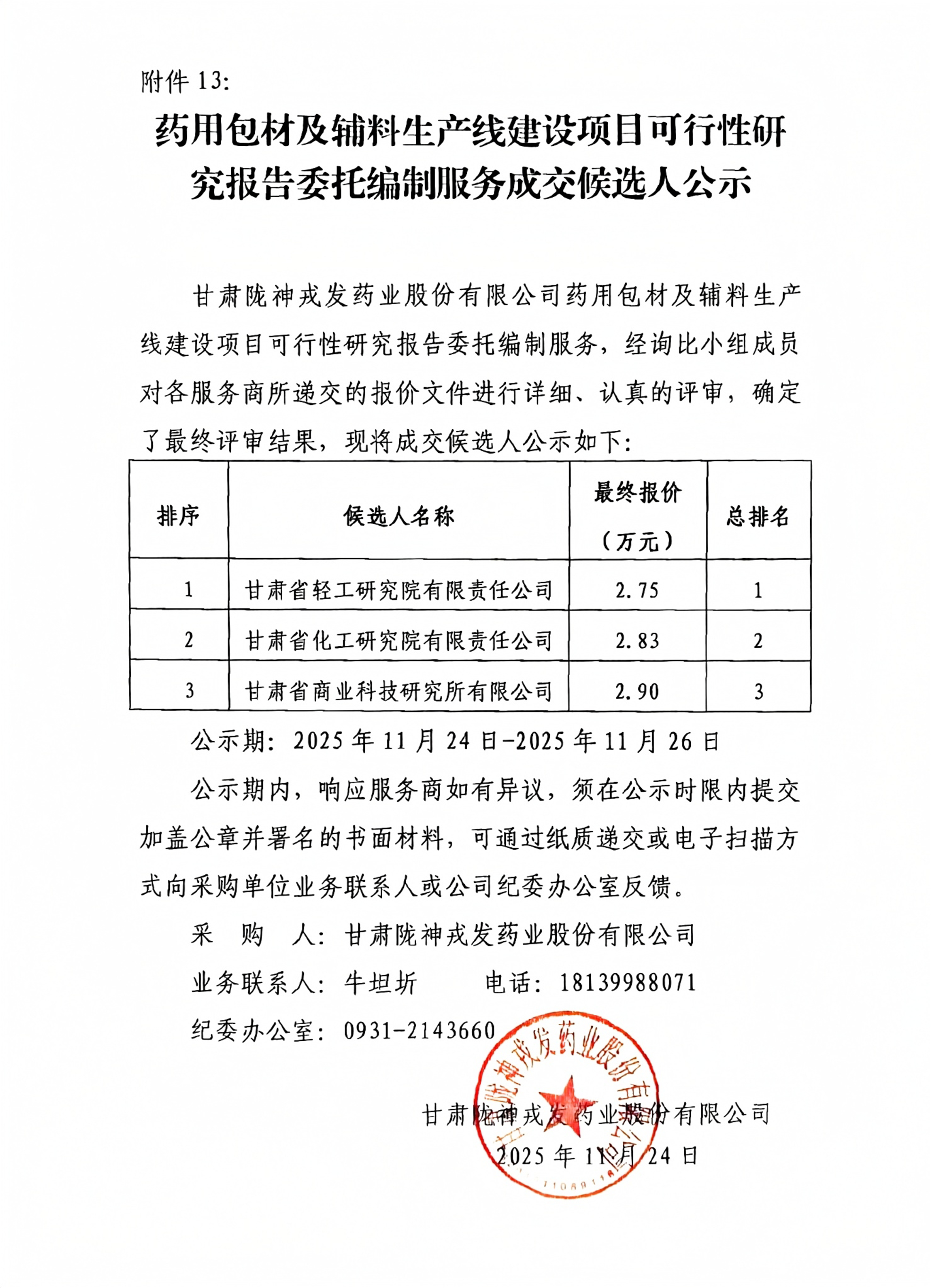 藥用包材及輔料生產(chǎn)線建設(shè)項(xiàng)目可行性研究報(bào)告委托編制服務(wù)成交候選人公示