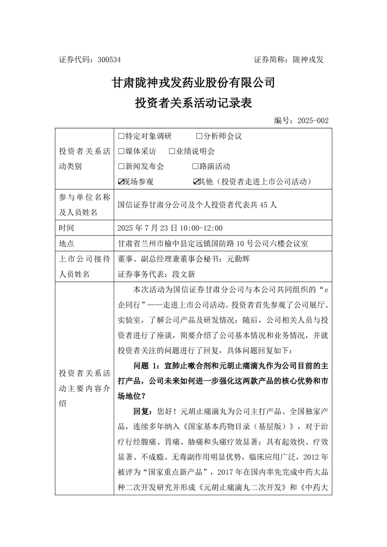 投資者關(guān)系活動(dòng)記錄表20250723
