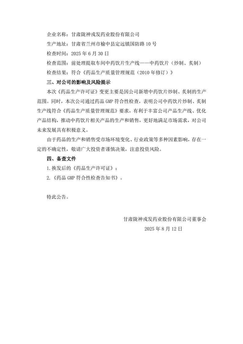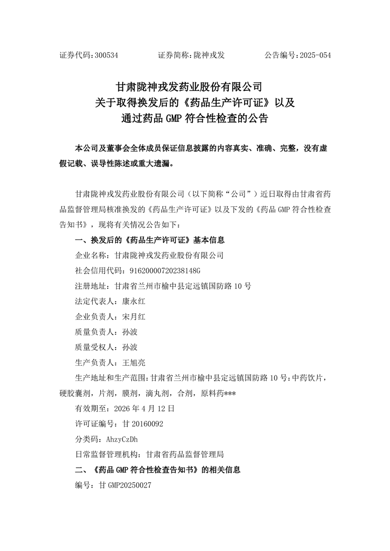 關于取得換發(fā)后的《藥品生產(chǎn)許可證》以及通過藥品GMP符合性檢查的公告