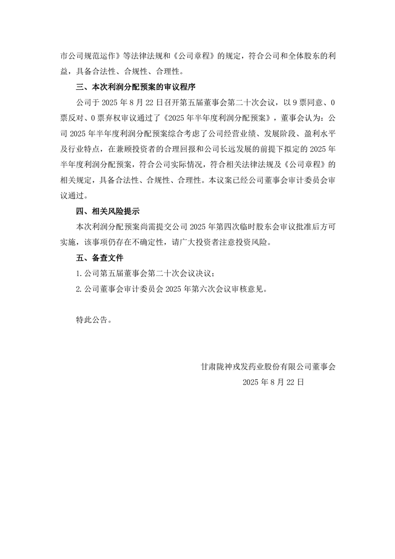 關(guān)于2025年半年度利潤(rùn)分配預(yù)案的公告